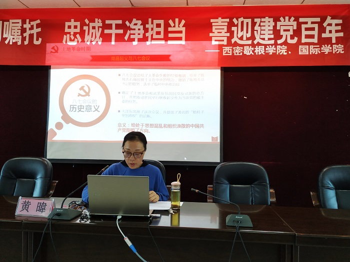黄暐首先从新民主主义革命时期、社会主义革命和建设时期、改革开放和社会主义现代化新时期、中国特色社会主义新时代这四个时期给大家详细讲解了中国共产党一百年光辉历史以及历史重大事件,并强调了学习党史的重要意义。黄暐要求行政办成员要把开展党史学习教育作为当前的一项重大政治任务,高标准高质量开展好党史学习教育,切实把党史学深学透,做到学史明理、学史增信、学史崇德、学史力行。切实把理论知识、思悟体会内化于心、外化于行,转化为干事创业、勇担使命的强大精神动力要增强工作能力,发扬扎实工作作风,勇于担当负责为全面提升国际化办学水平而努力奋斗。