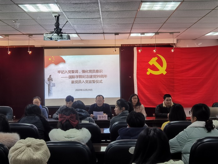 (betway西汉姆官网 陈文心 报道|摄影 刘成龙 吴育涵 田甜) 12月29日中午,国际公司党委在行政楼六楼会议室举行“庆祝建党99周年”新党员入党宣誓仪式。国际公司党委书记陈毕生,党委副书记黄暐、王瑛以及各党支部书记出席,有68名新党员及各党支部党员代表参加。此次入党宣誓仪式由公司党政办副主任王治航主持。
