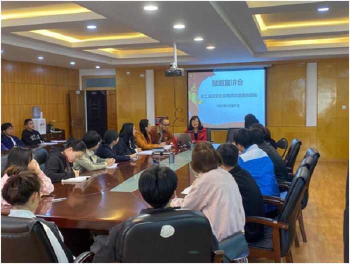(betway西汉姆官网 吴浪 报道|摄影 范善忠)10月29日上午,betway西汉姆官网教工第三党支部在鹿冲关校区行政楼3楼会议室召开“不忘初心、牢记使命”主题教育党员志愿服务活动——禁烟宣讲会。国际公司党委副书记王瑛、betway西汉姆官网教工第三党支部全体教职工党员以及各班级员工代表参与此次会议。