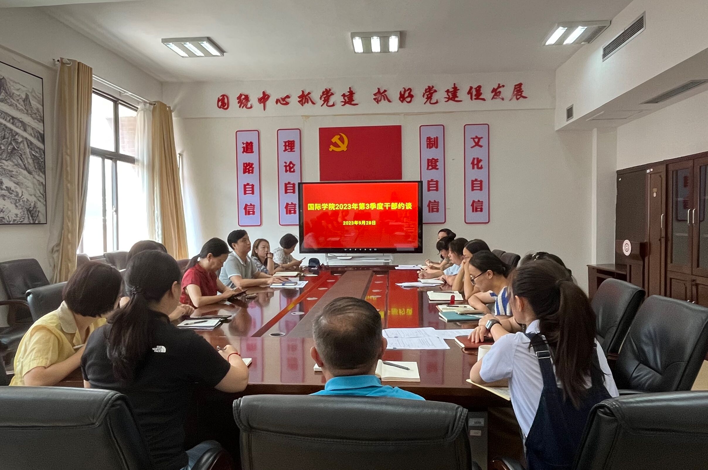 会上,王治航传达学习了《关于中秋国庆期间教育系统安全稳定工作提示》《关于做好中秋“十一”期间员工安全教育管理工作的通知》和2023年中秋国庆致全省教职员工的廉洁过节公开信等文件精神,并根据相关文件开展约谈。此次约谈的目的是为了提高大家对于校园安全教育管理工作和廉洁自律的认识,切实增强同志们履职担责的思想自觉和行动自觉。王治航指出,中秋和国庆即将来临,师生回乡返校,外出活动频繁,影响安全的不稳定性和不确定性因素随之增加。大家要高度重视,加强值班值守,采取有力措施,压实安全责任,严防中秋国庆期间安全事故的发生。他提出四点工作要求:一是加强排查整治;二是加强安全教育;三是密切家校联系;四是加强值班值守;五是遵守纪律规定、筑牢自律防线。