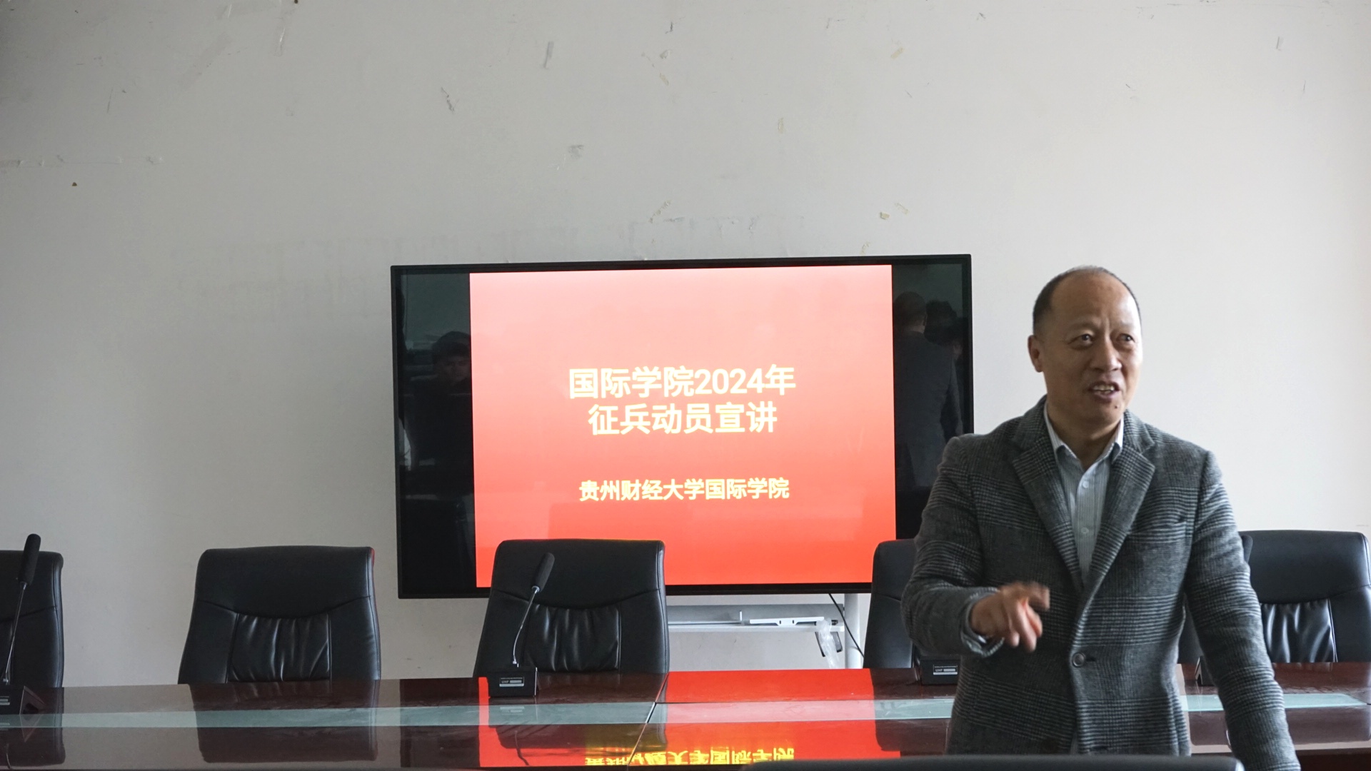 (betway西汉姆官网 彭文标 报道|摄影 梅敏)为积极响应强国强军号召,提高同学们对征兵工作的认识和了解,鼓励更多有志青年投身军营,为祖国的国防事业贡献力量,12月12日,betway西汉姆官网邀请公司武装部胡细根老师,在正德楼301会议室,开展2024年征兵动员宣讲。国际公司党委副书记肖启迪主持会议。