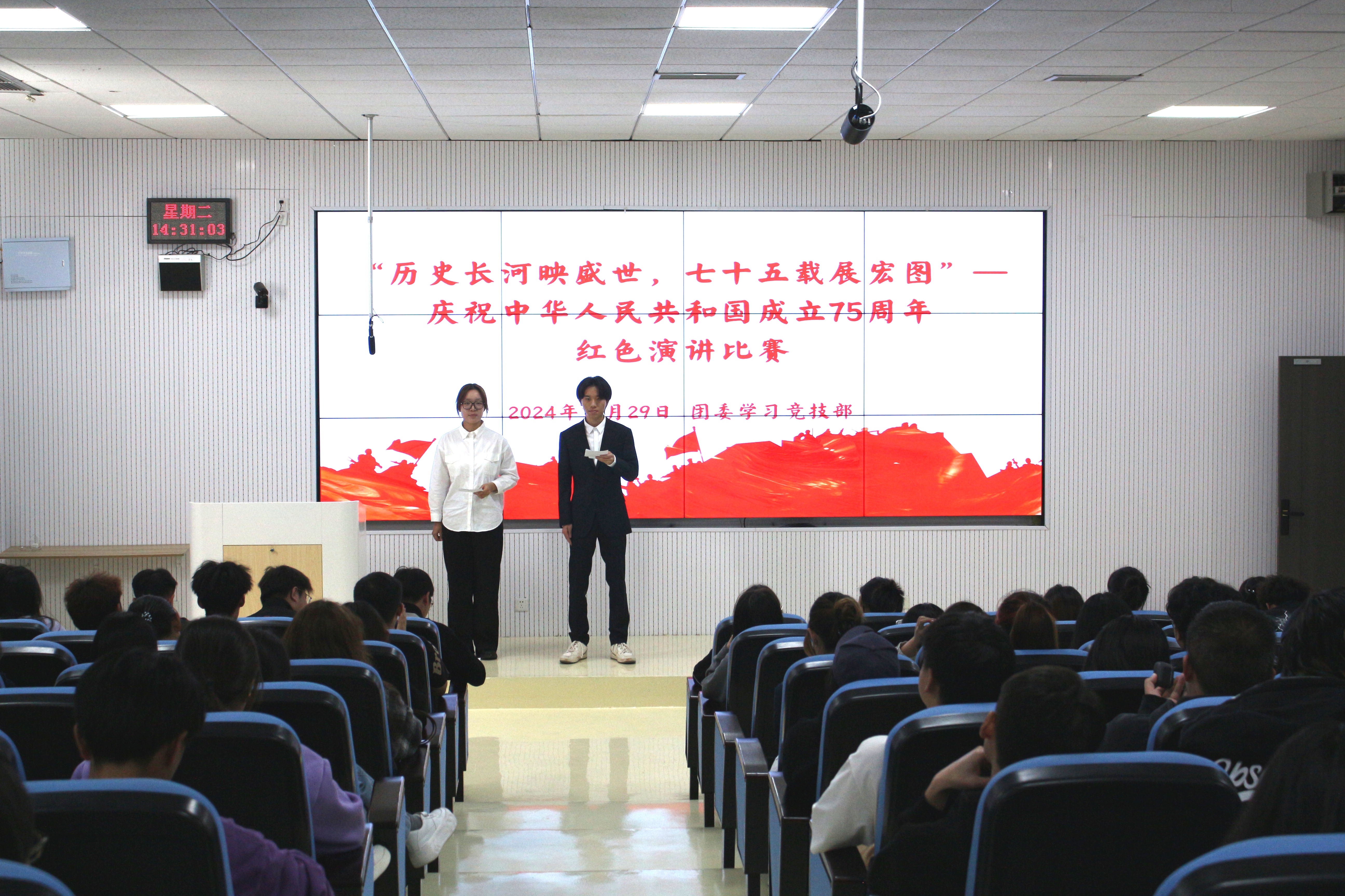 活动现场气氛热烈,同学们精神饱满,依次上台发表演讲。他们紧扣主题,或深情回顾新中国成立以来的艰辛历程,或生动讲述感人至深的红色故事,或自豪展现新中国取得的辉煌成就。每一位演讲者都以饱满的热情、真挚的情感和生动的语言,表达了对祖国的无限热爱和崇高敬意。通过一个个鲜活的历史故事和生动的现实案例,在场的观众们深刻感受到了中华人民共和国成立75年来所经历的沧桑巨变和取得的伟大成就,不时爆发出热烈的掌声。