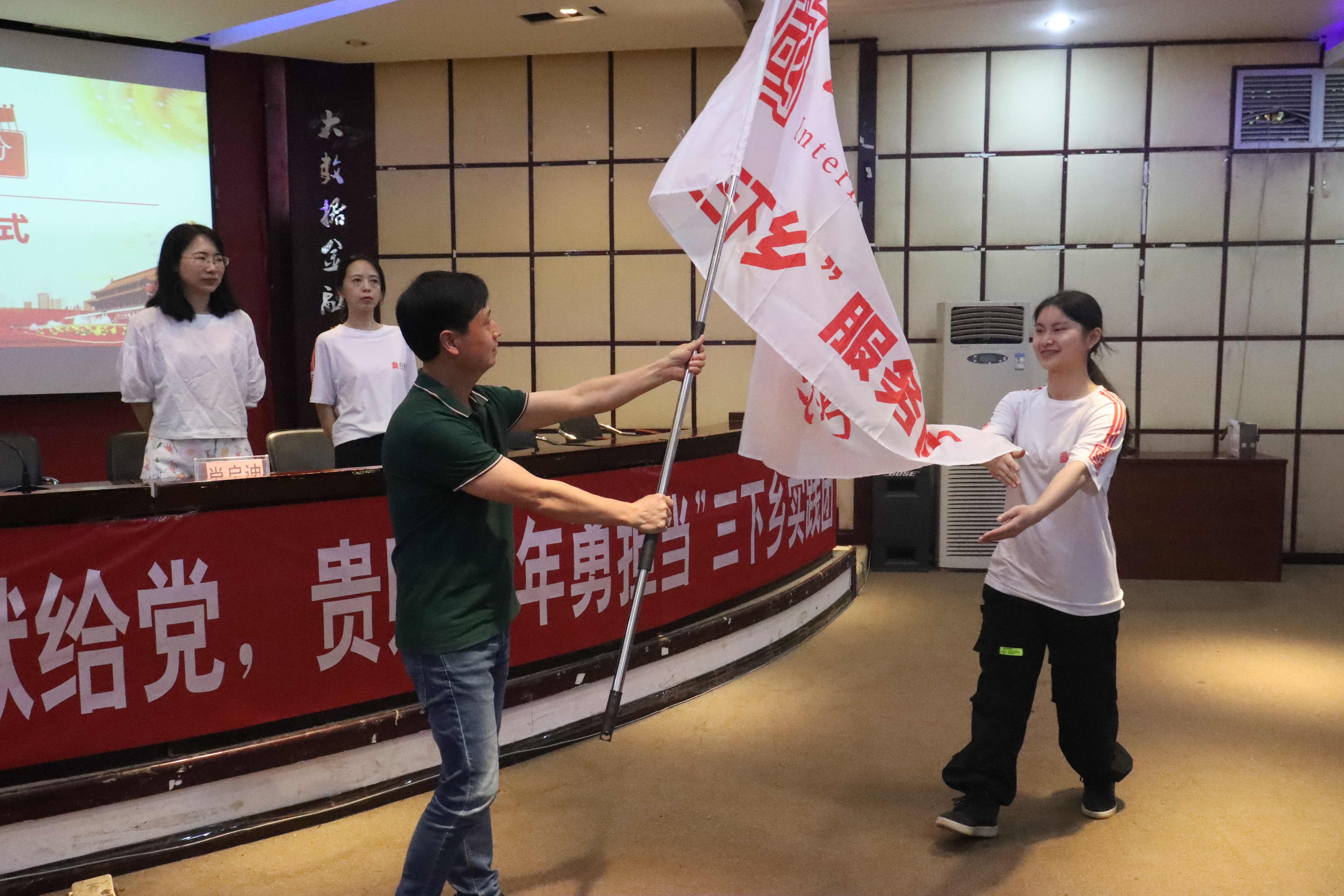 仪式最后,王治航为公司2022年暑期“三下乡”社会实践团队授旗并宣布出征。