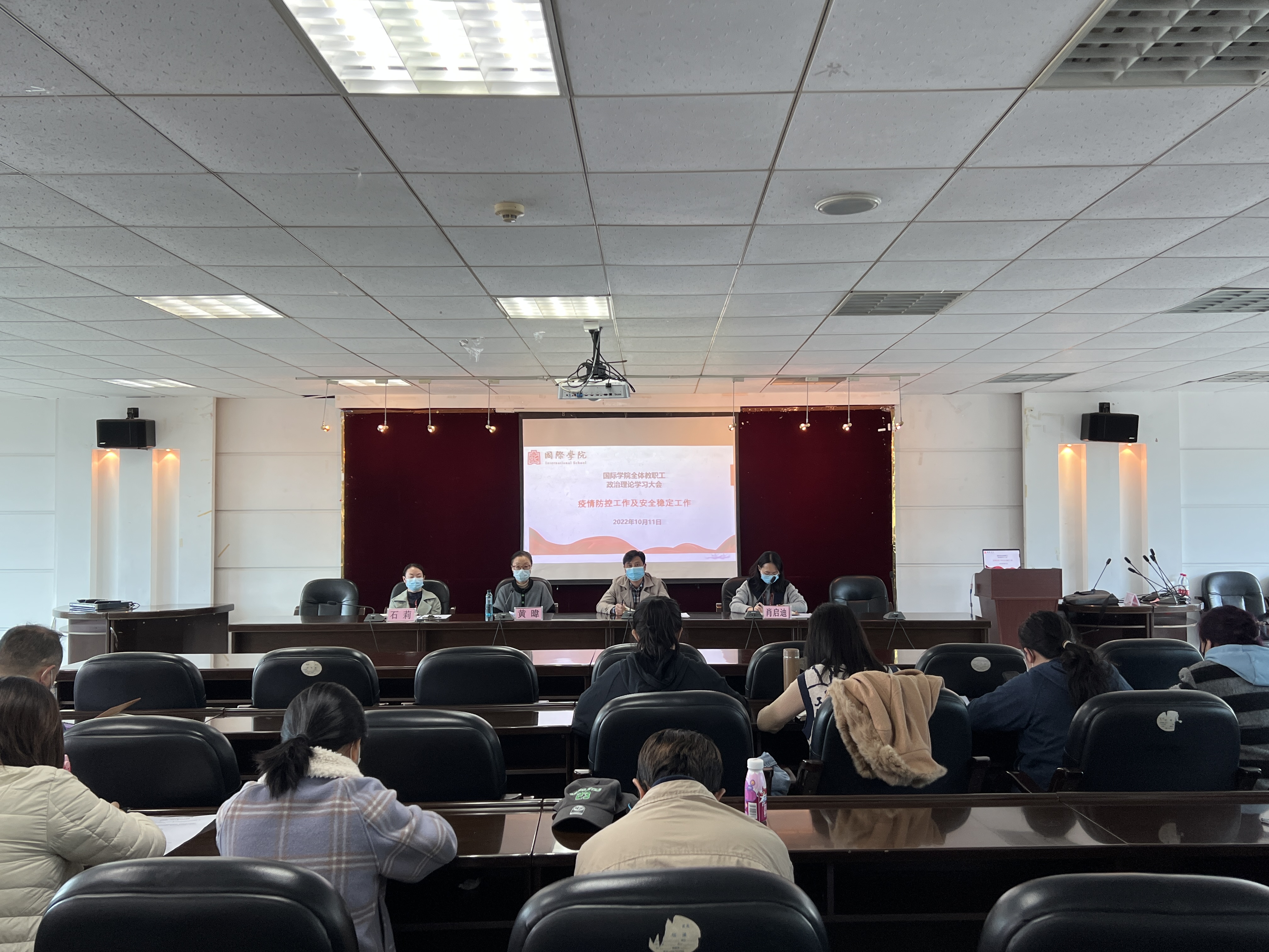 王治航指出,要把近期的安全稳定和疫情防控工作作为头等大事来抓。要求全体教职工要深刻领会把握省委、省政府和省教育厅以及公司关于疫情防控和安全稳定工作的决策部署以及相关会议精神,提高自身思想意识与政治站位,压紧压实工作责任,凝心聚力,全力做好当下疫情防控和安全稳定工作,推动各项工作落实落细,切实筑牢校园安全防线,以实际行动迎接党的二十大胜利召开。