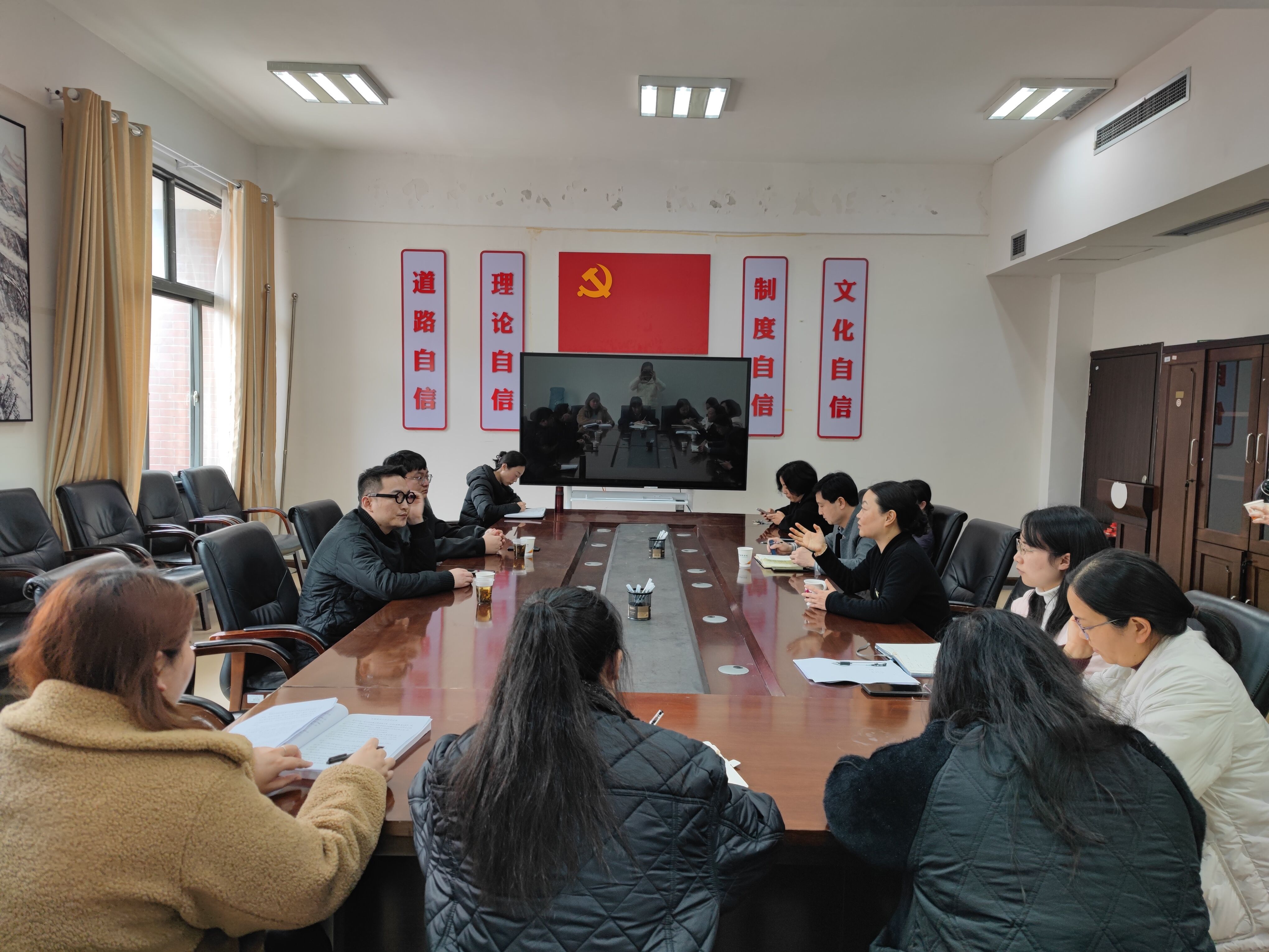 会后,杨龙一行前往西区博学楼进行搭建新媒体电商孵化基地办公区域实地选址考察。