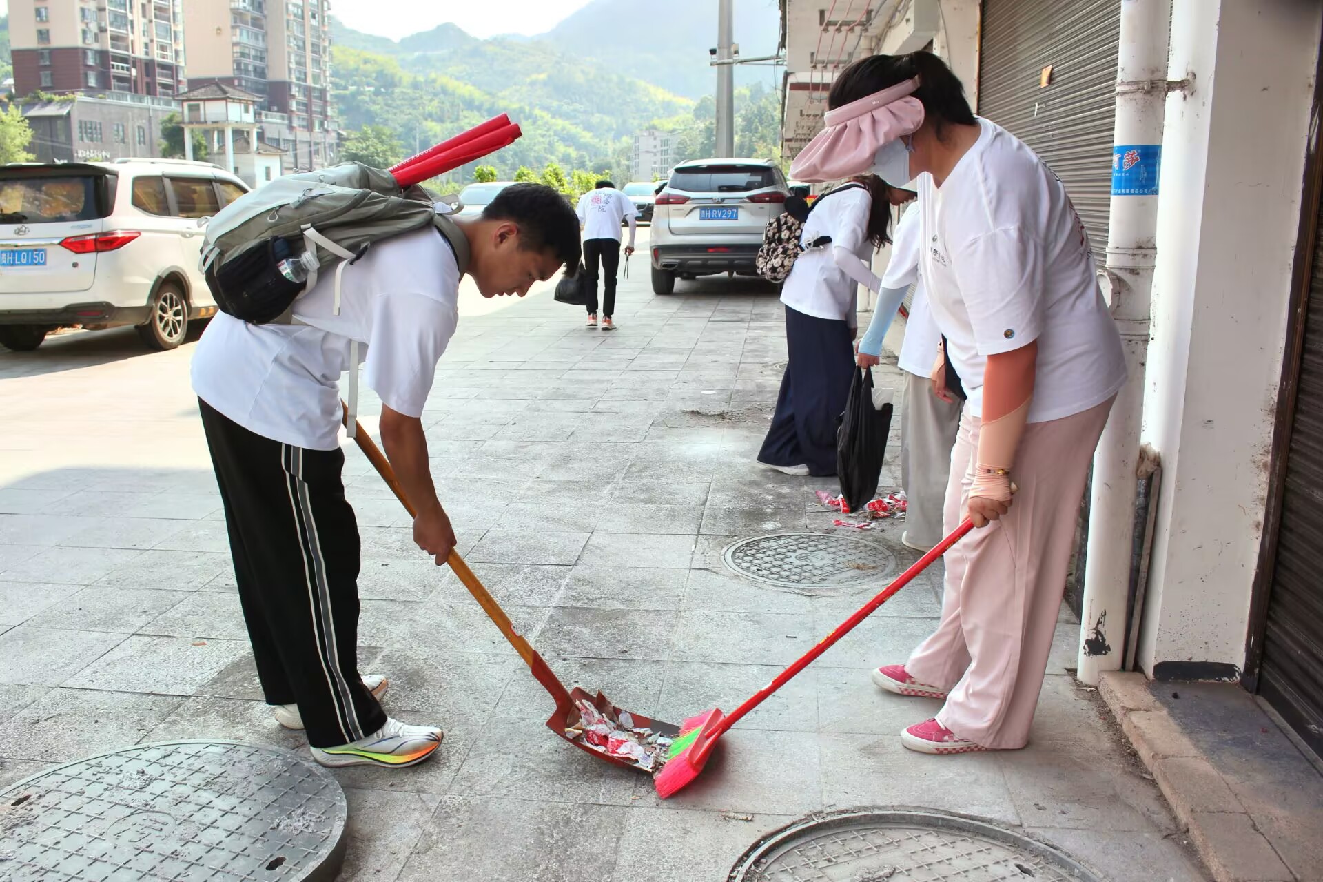围绕贵州省“两清两改两治理”政策,betway西汉姆官网“助力乡村振兴,共建美丽乡村”实践团在苗家湾社区开展环境整治行动。清理乱堆乱放、参与垃圾分类,骄阳下的汗水换来了社区环境的整洁如新。与此同时,队员们化身“安全宣传员”,向社区群众讲解防溺水、禁毒防艾知识,还学用“蒙乌(您好)”“农聂啦(吃饭了吗)”等苗语短语拉近和居民的距离,让政策宣讲更有温度。