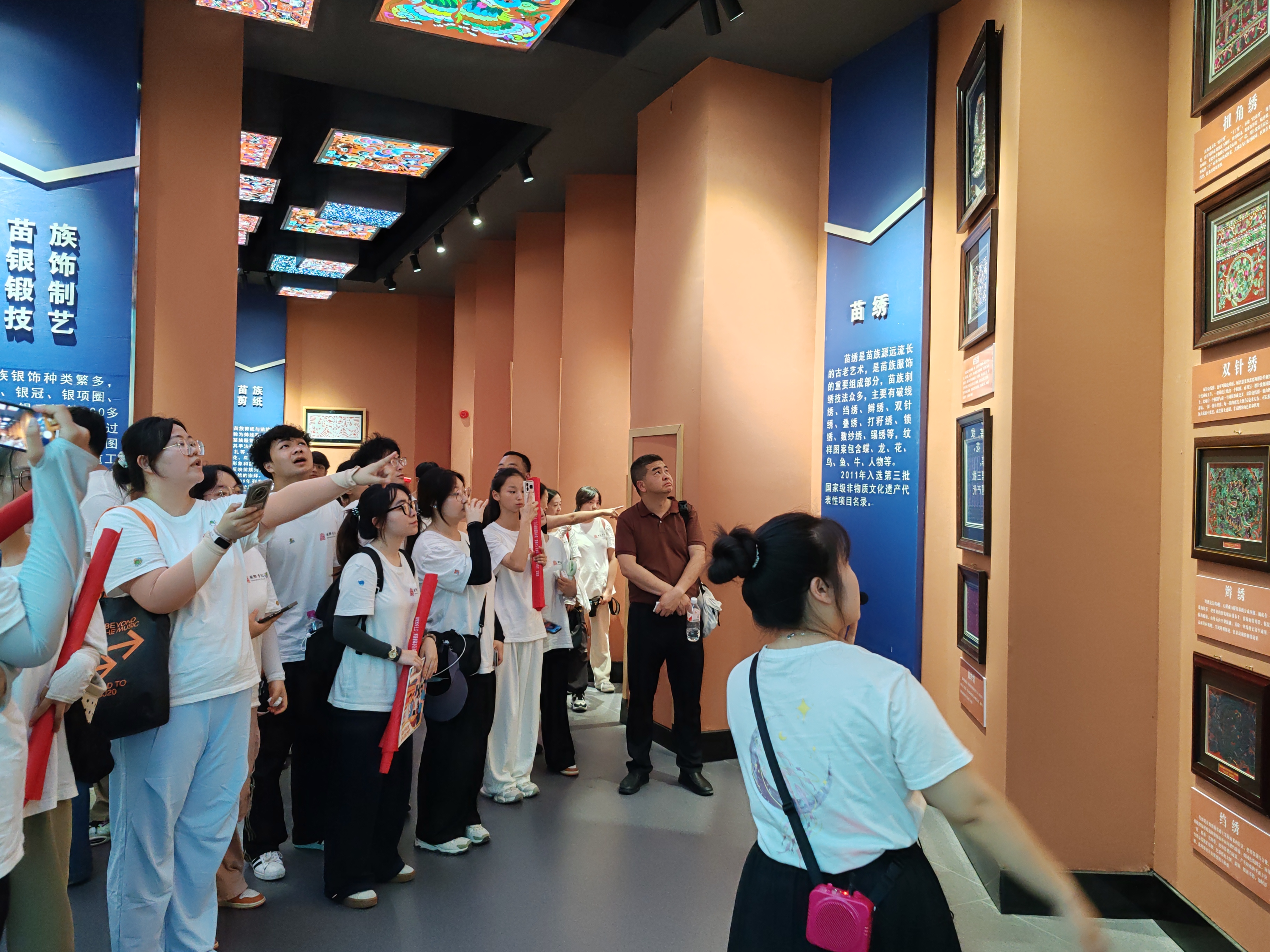 betway西汉姆官网“同心共筑中国梦,民族团结一家亲”实践团在苗疆姊妹广场宣讲民族政策,在台江非遗展览馆感悟“银冠上牡丹纹与蝴蝶纹共生”的融合智慧。跟着苗族阿婆学苗绣、听苗族大叔讲邻里互助故事,文化传承的接力棒在青春手中传递。
