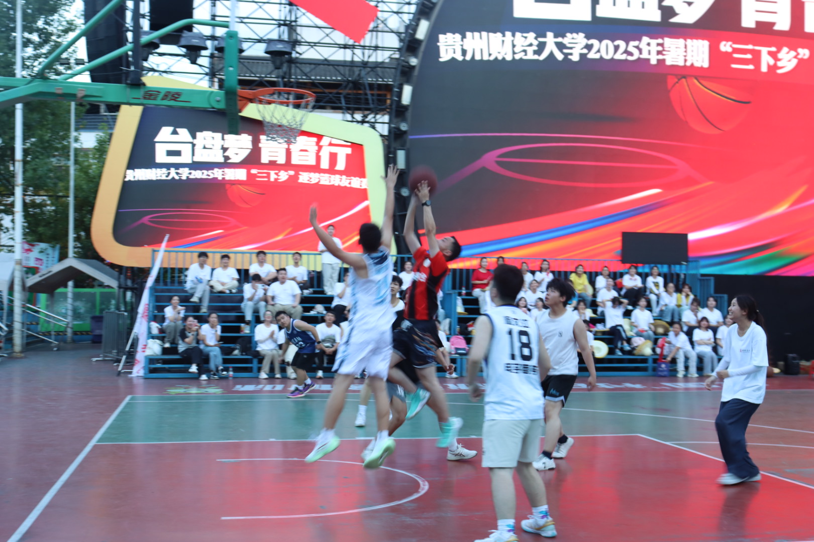 台盘村篮球场上上演了一场特殊的“村BA”友谊赛。实践团与当地球队以球会友,延续着这项起源于上世纪80年代的乡村赛事传统。夜幕降临,《好汉歌》《最炫民族风》等节目接力上演,球场变舞台,歌声传真情。