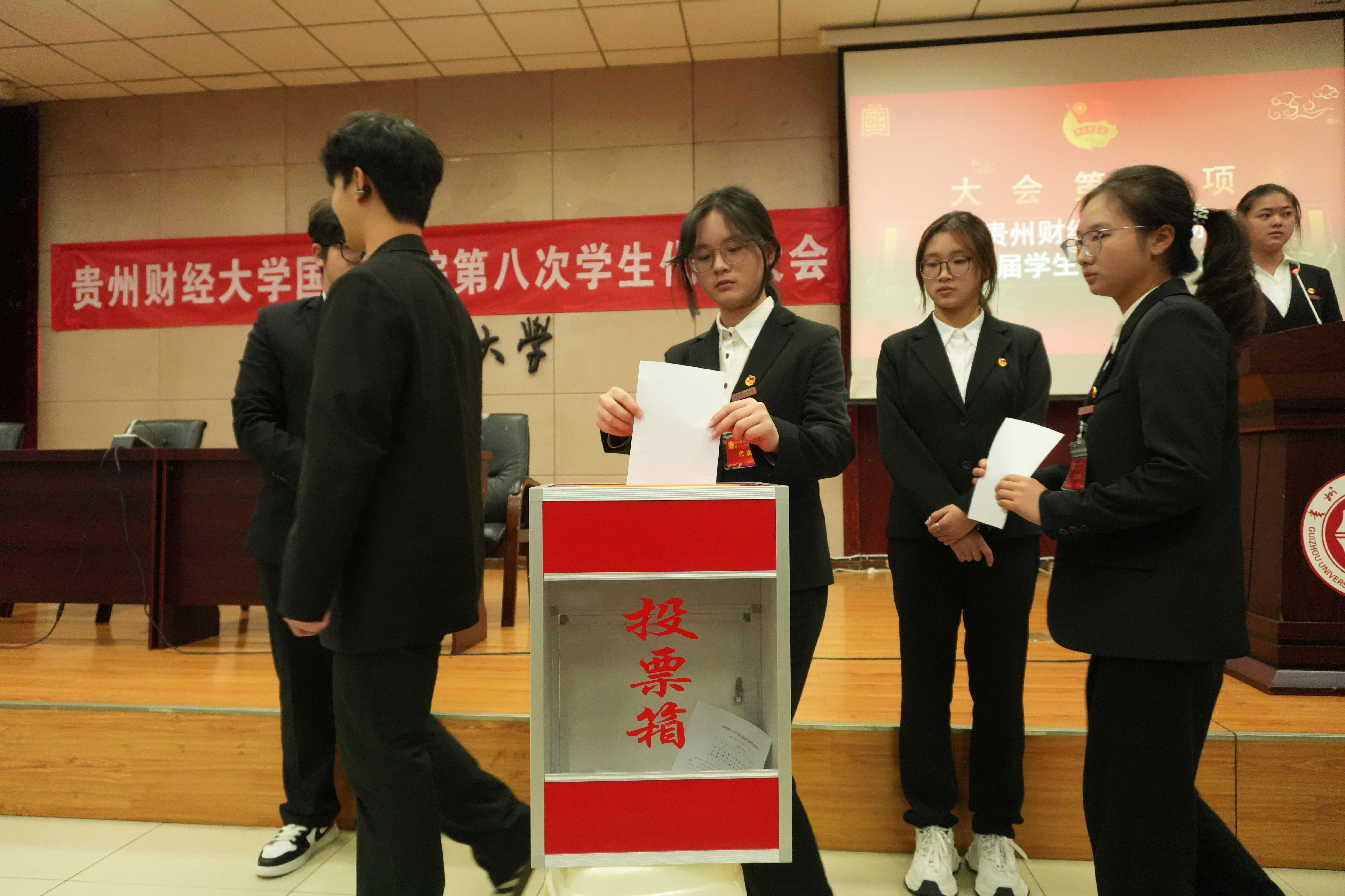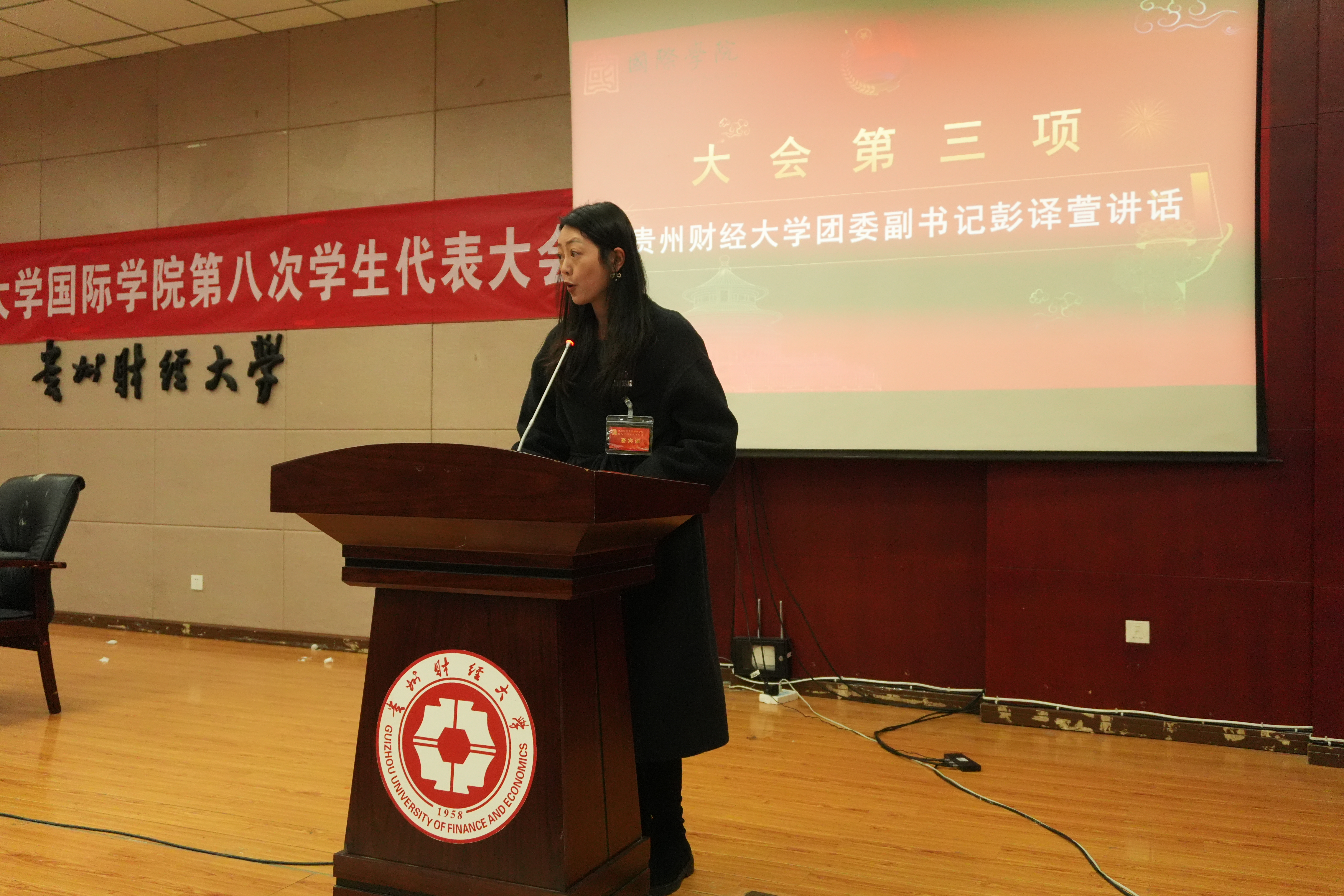 大会在嘹亮的国歌声中正式拉开序幕。彭译萱致辞,她充分肯定了betway西汉姆官网员工组织过去一年取得的成绩,并对下一步工作提出三点要求:一要强化理论武装,组织化开展习近平新时代中国特色社会主义思想与党的二十届四中全会精神学习,引导青年坚定不移听党话、跟党走;二要深化员工会改革,落实《加强和改进新时代学联员工会工作实施方案》,提升组织效能,做实服务项目,改进组织形象;三要砥砺优良品格,发挥代表示范作用,引领广大同学弘扬贵财精神,以实际行动彰显青春奋斗底色。