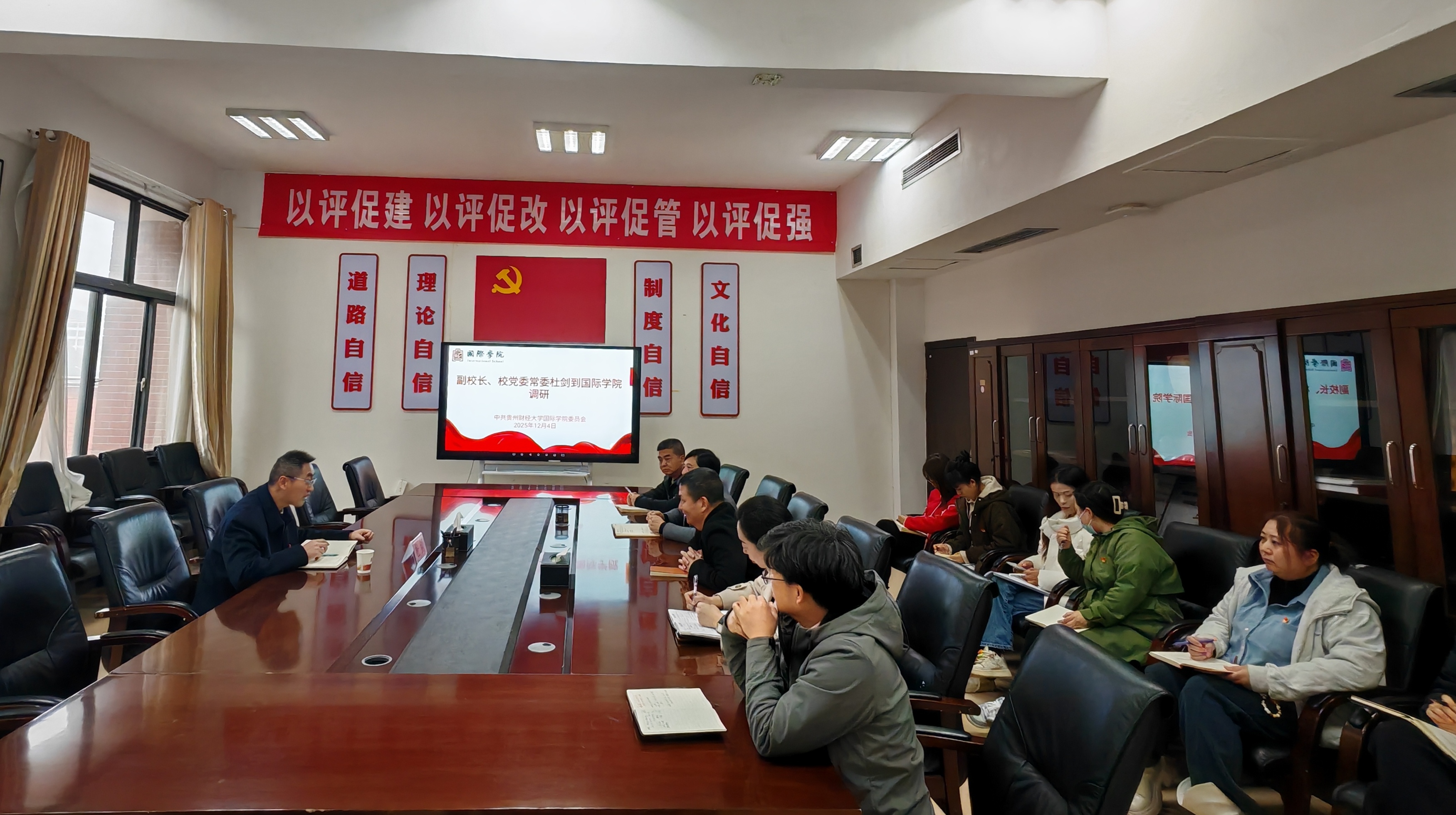 杜剑肯定了公司一年来各项工作取得的成绩,并对公司下一步需要改进和提升的方面提出了建议。他强调,中外合作办学的规范与内涵式发展是当前国际合作办学的基本方向,团队队伍的建设更是公司转型和高质量发展的核心要素,要充分发挥好新进团队与公司专业负责人的积极作用,要多向取得突出成效的兄弟公司学习,主动谋划中外合作项目的高质量建设与发展。同时要积极创新员工管理模式,加强与员工的沟通和交流,营造良好的学习和生活氛围。