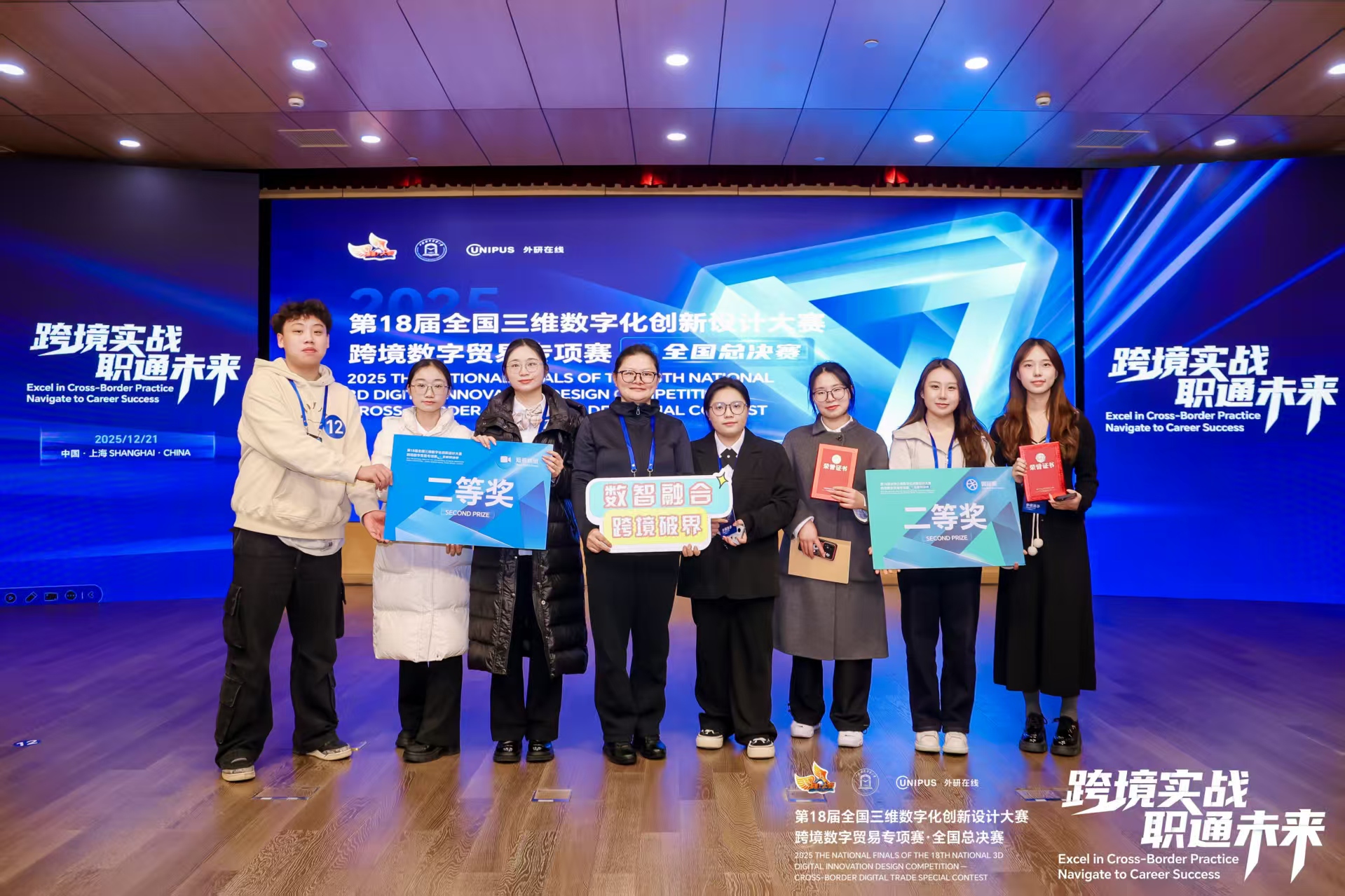 (betway西汉姆官网 沙静 图文报道)12月21日,以“跨境实战,职通未来”为主题的第18届中国三维数字化创新设计大赛跨境数字贸易专项赛在上海对外经贸大学圆满结束!betway西汉姆官网的参赛队伍在激烈的竞争中脱颖而出,斩获佳绩。betway西汉姆官网四支代表队在国内短视频赛道、国内直播赛道、国际赛道斩获两枚银奖、两枚铜奖,工商管理公司代表队在国内直播赛道斩获一枚银奖。