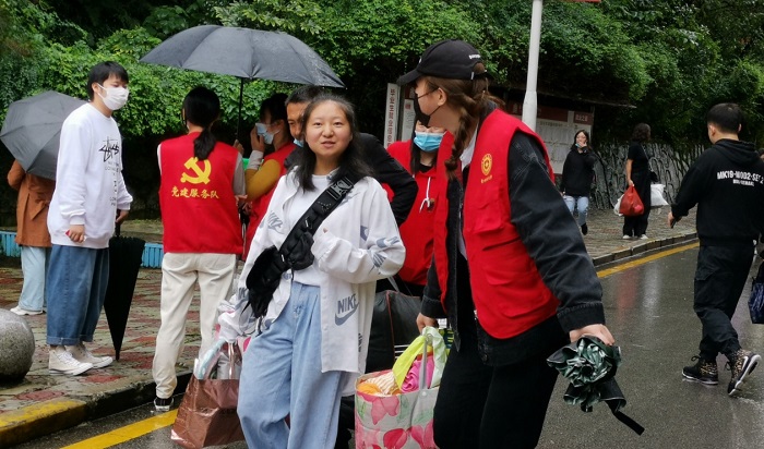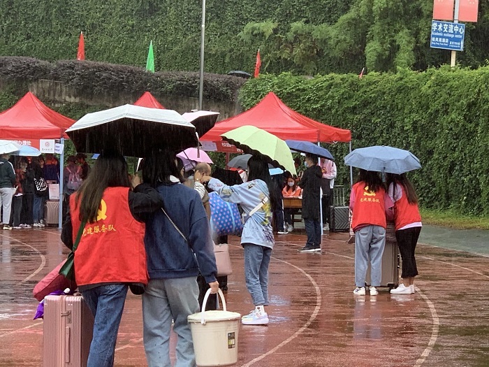 细雨绵绵下,员工党员志愿者们都热情高涨,将无私奉献、吃苦耐劳的精神进行到底,引导新生办理报到手续,帮助新同学搬运行李物资、安排住宿,耐心仔细地为新生解答疑惑,每一名党员志愿者都充满热情和活力,践行了党全心全意为人民服务的宗旨。