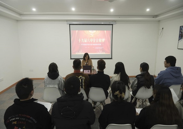 (西密歇根公司 蒋舒阳 图文报道)11月18日下午,西密歇根公司党委副书记王瑛在西密歇根公司员工宿舍四栋一楼会议室为团委老师及团委各部门的员工上了一堂关于学习“十九届六中全会精神”的微团课。