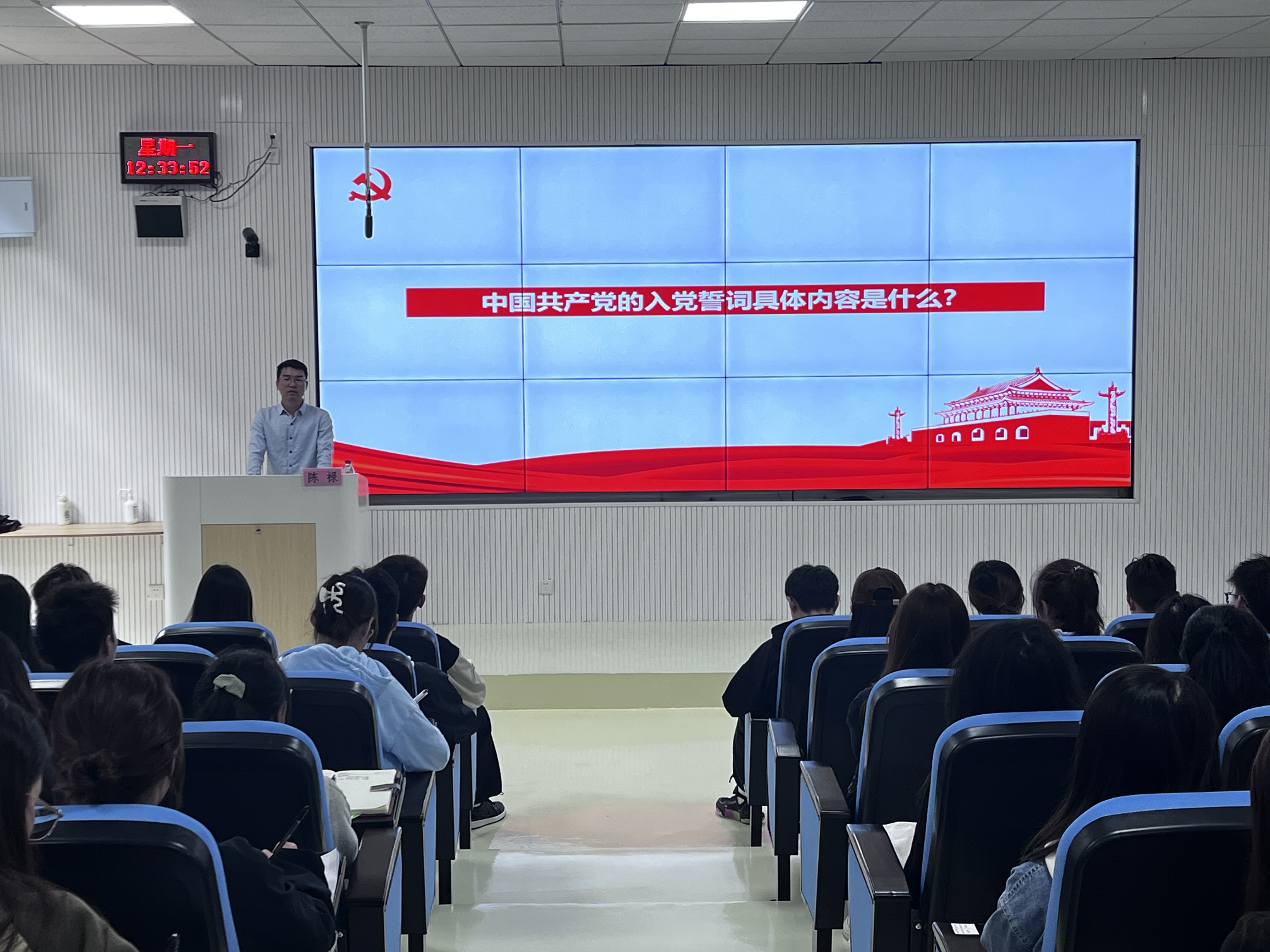 陈禄以“中国共产党的入党誓词”为切入点,引导大家思考,通过“理想信念的力量、领导核心的力量、组织的力量、伟大精神的力量、人民的力量、自我革命的力量”六个方面为学员们阐释了中国共产党为什么能从时代中脱颖而出。通过理论与实际事例相结合的形象宣讲,让全体学员深刻体会到共产党“能”在哪里,又为什么“能”的原因。