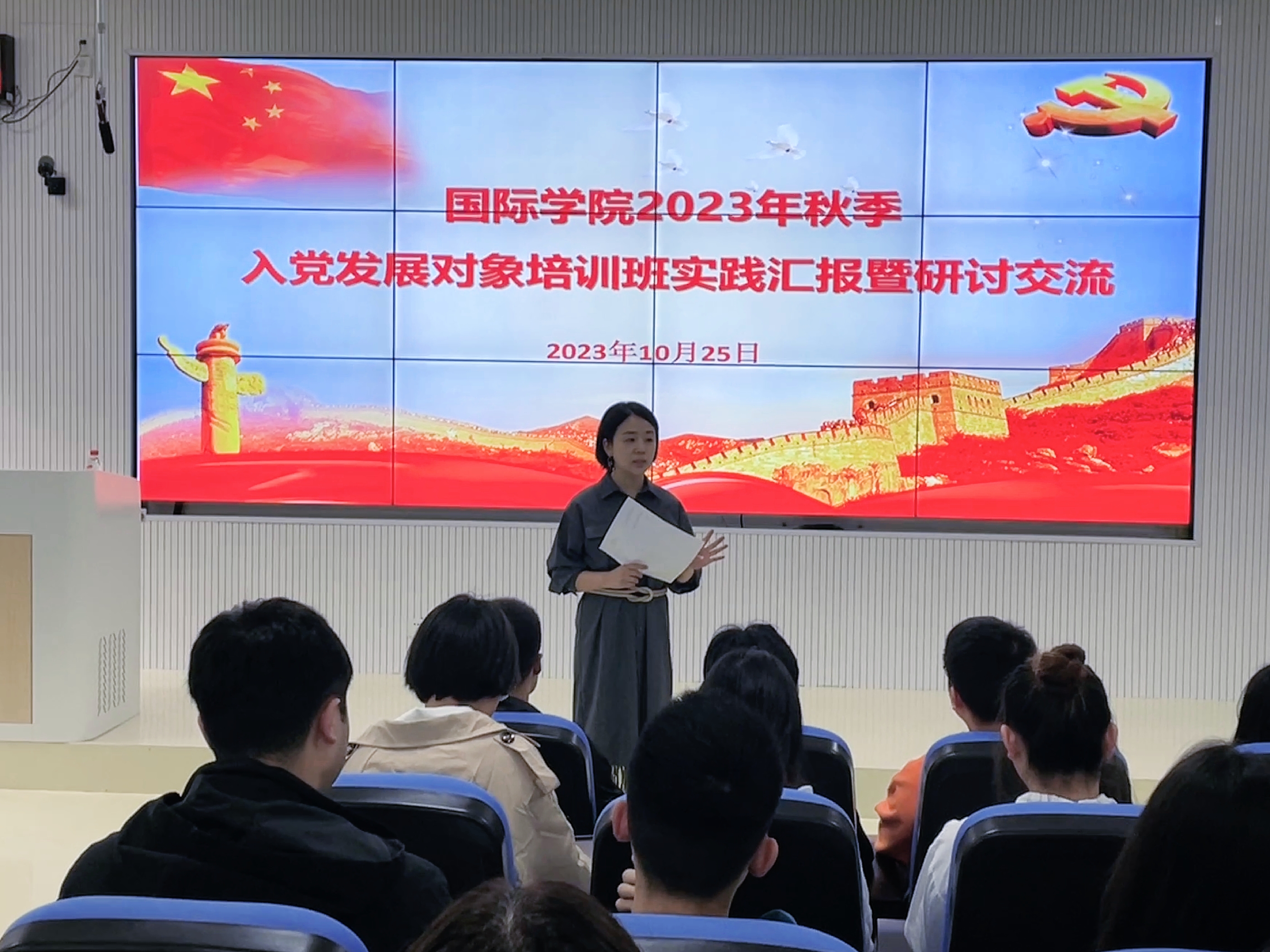 (betway西汉姆官网 李小菊 报道|摄影 罗湘婷 张誉敬 )10月25日,国际公司党校在乐学楼101教室开展2023年秋季发展对象培训班实践汇报暨研讨交流会,专职组织员李欣灿老师主持,培训班全体学员参加。