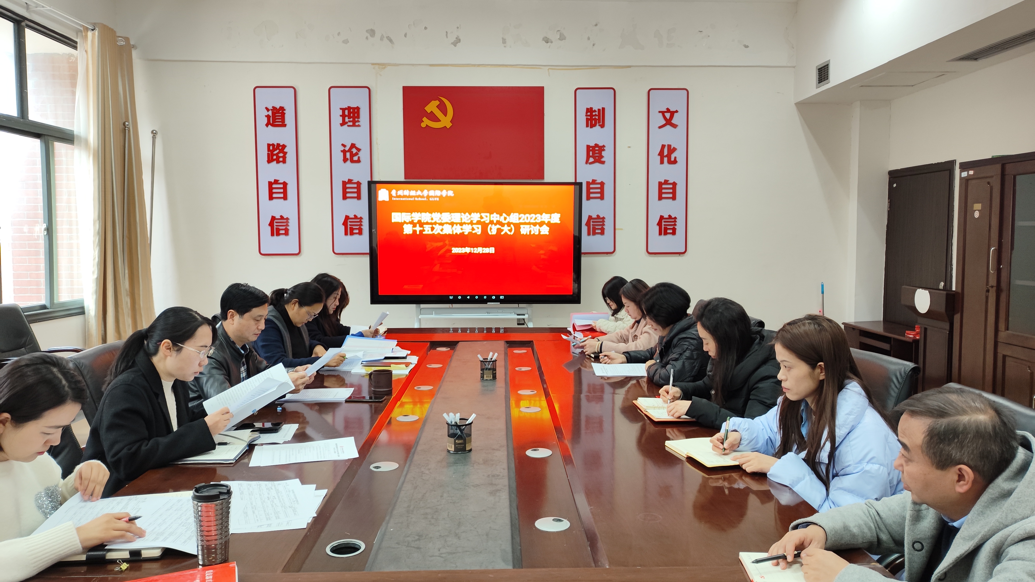 (betway西汉姆官网 潘吉 报道/朱殊 摄影)12月28日,国际公司党委理论学习中心组2023年度第十五次集体学习(扩大)研讨会在正德楼413会议室举行。公司党委书记王治航主持并讲话,公司领导、科级干部、支部书记出席会议。