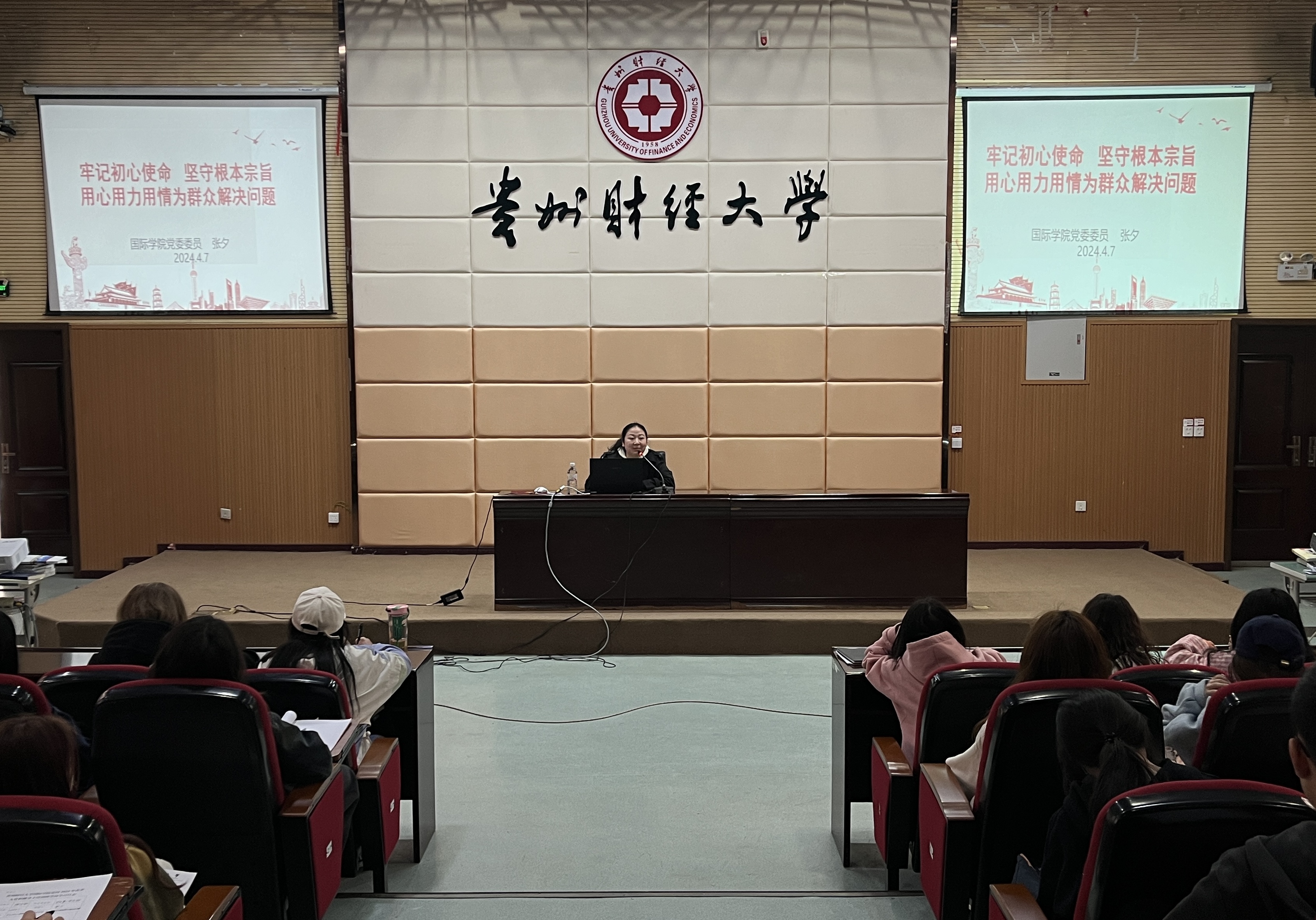 (betway西汉姆官网 黎子豪 报道|摄影 陆晓莹)4月7日中午,国际公司党委委员张夕在崇德楼一楼报告厅为2024年春季入党积极分子和员工党员作《牢记初心使命 坚守根本宗旨,用心用力用情为群众解决问题》专题党课。