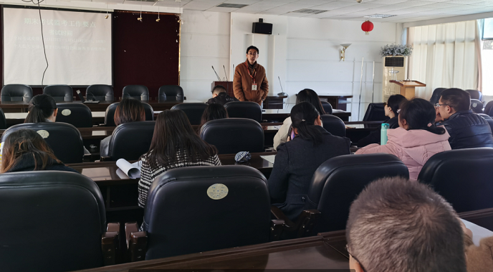 杜剑强调了考试监考过程中要加强考风建设,加强员工诚信考试意识,树立优良学风,并讲解了教学事故认定内容,督促公司监考人员严格遵守监考规则。吴浪培训了关于四、六级、期末考试监考具体内容,提醒监考人员考场注意事项,并对监考人员提出的关于监考相关疑问进行了仔细解答。