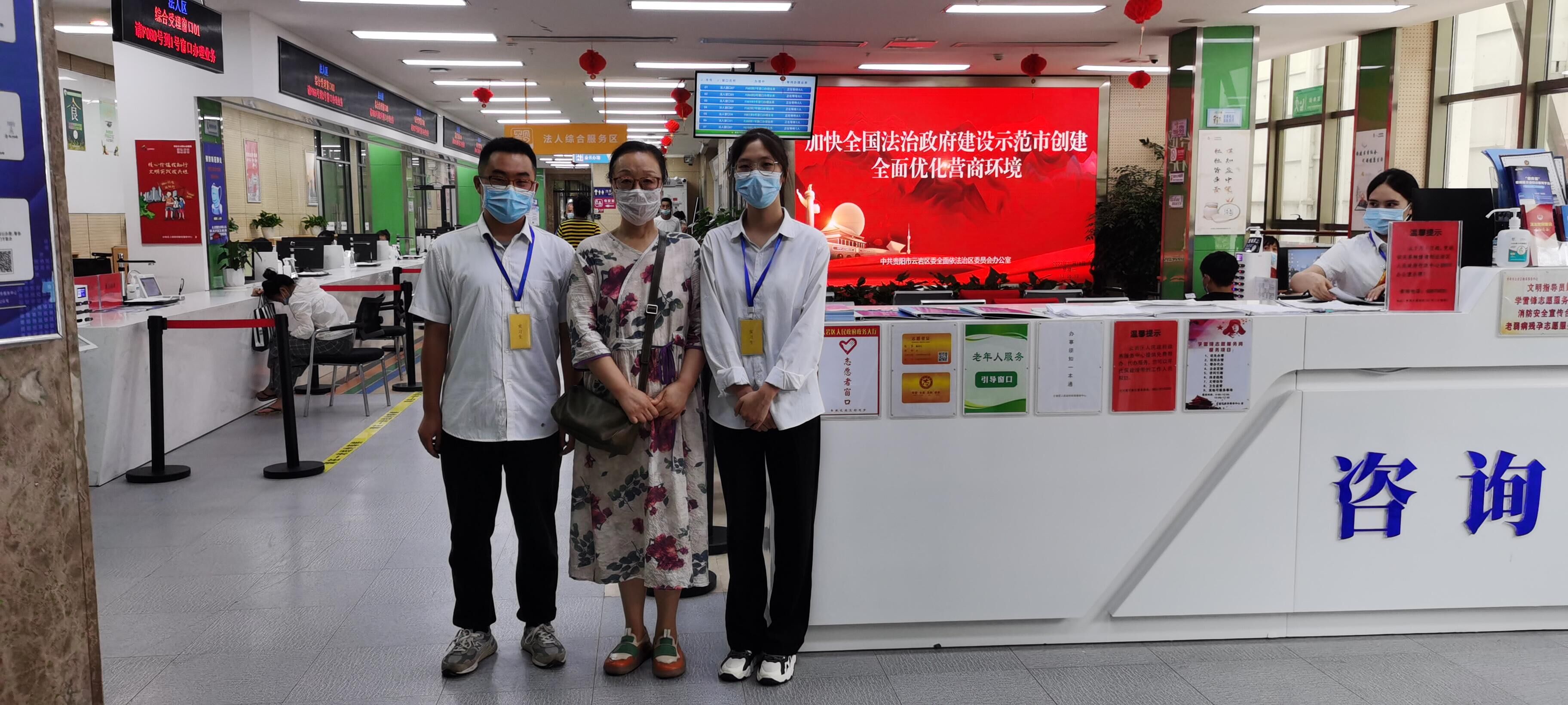(betway西汉姆官网 沙静 图文报道)根据公司的工作安排,7月19日,国际公司党委副书记黄暐和教务科老师沙静赴云岩区政府政务服务中心对19级参与集中实习20名员工开展实习检查。
