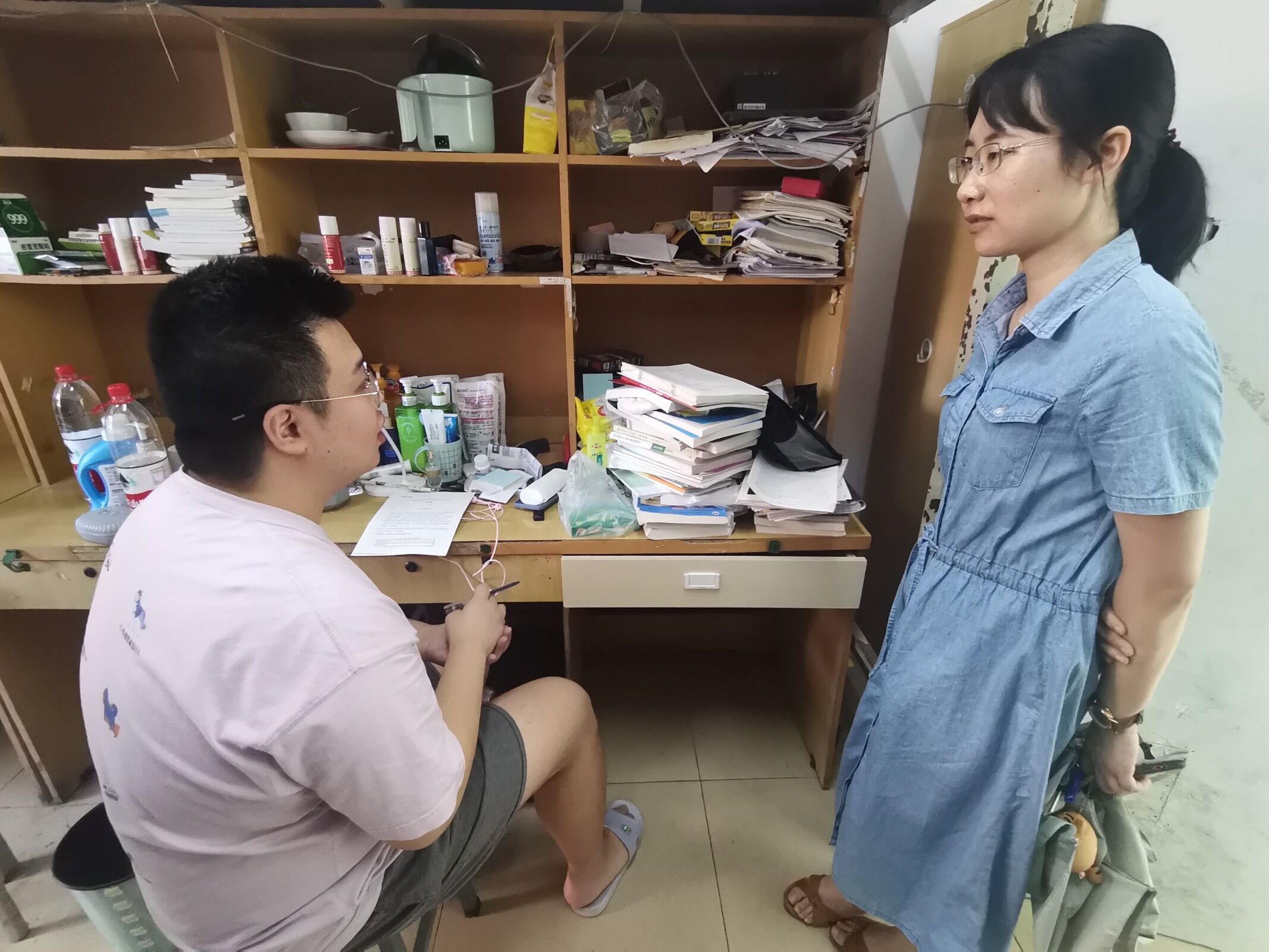(betway西汉姆官网 陈杨欧敏 图文报道)2021-2022学年暑期专业实习已经接近尾声,为督促同学们站好最后一班岗,确保实习取得成效,7月27日,国际公司党委书记王治航、党委副书记肖启迪、教务科田永溪老师一行到鹿冲关校区第二教学楼检查员工校内实习情况。