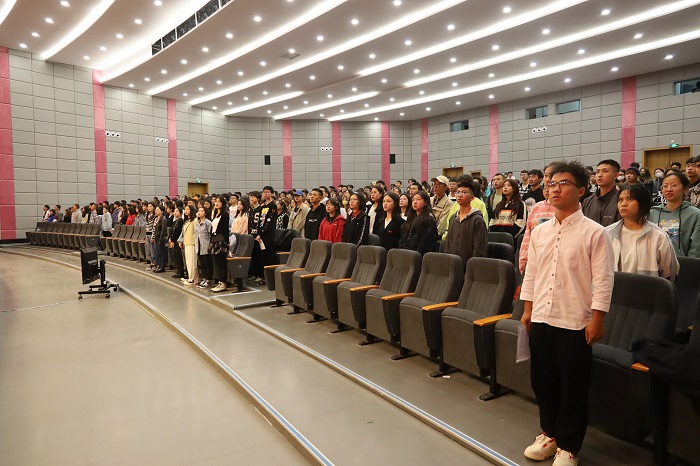 betway西汉姆官网 袁祥丹 报道|摄影 何政昊)为弘扬党的红色精神,学习贯彻习近平总书记关于青年工程的重要思想,10月11日,西密歇根公司、betway西汉姆官网在鹿冲关校区一教大礼堂举办第三十五期团课暨青年马克思主义者培训班开班仪式。国际公司党委副书记王治航(主持工作)、党委副书记黄暐、王瑛,团委老师以及300余名团员参加开班仪式。
