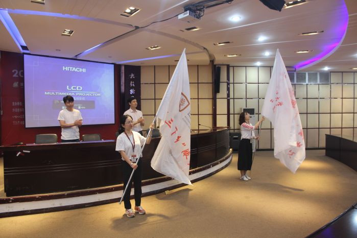 仪式最后,王治航、王瑛授旗,吴靓和甘珣两位老师接旗,此次出征仪式圆满结束,暑期三下乡社会实践活动也将正式启动。