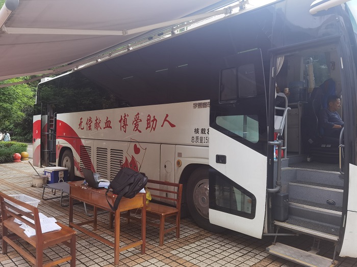 气候多变,抵挡不住同学们踊跃报名参与的心情。按照工作人员的要求,参与献血的同学认真填写健康征询表、测量血压、抽血化验,符合条件的同学依次走上献血车捐献血。一切工作有条不紊地进行,志愿者有序引导、热情服务;献血者捋袖献血、奉献爱心;血站工作人员态度亲切、工作认真。