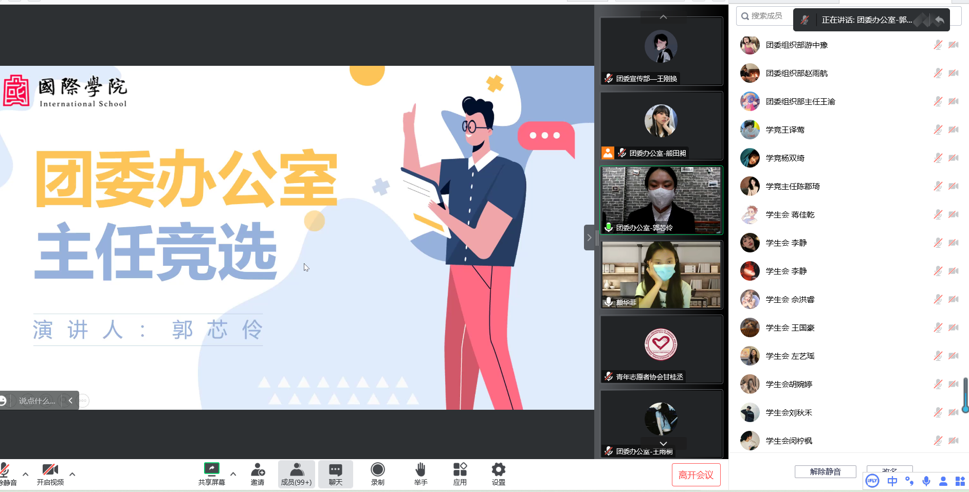 大会开始,颜华菲首先对上一届团委员工会的工作表示高度肯定,同时对新一届员工干部提出要求,希望新一届员工骨干要以身作则,严格要求自身,保持朝气蓬勃、奋发有为的精神状态,传播校园正能量,全心全意为广老员工服务。随后,34名团委员工干部候选人依次进行演讲,阐述了自己的竞选意向、工作理念和今后工作规划等。