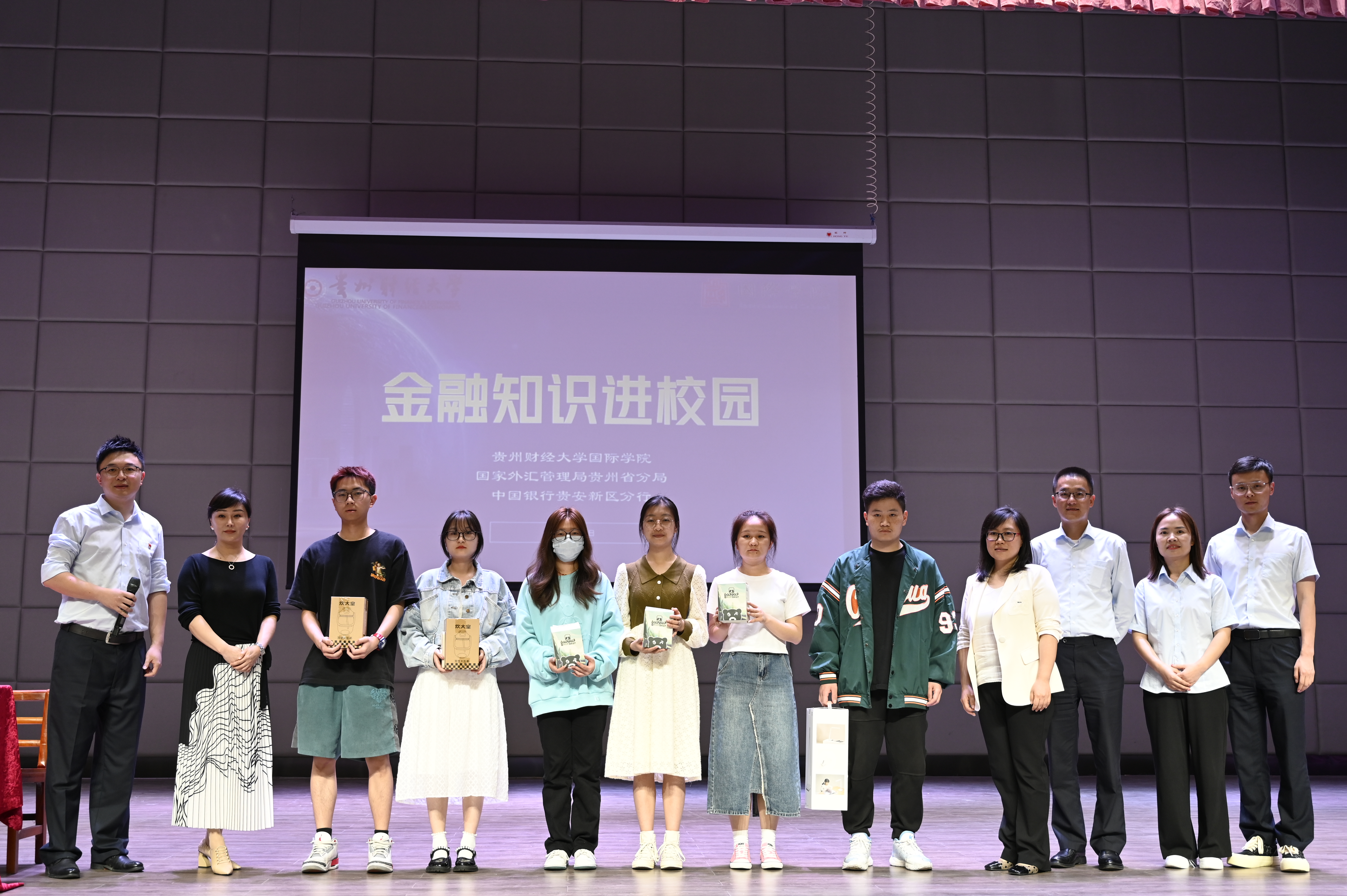(betway西汉姆官网 王尧 报道|摄影 王婷婷)为进一步提升员工的金融水平知识,提高其风险防范意识和能力,培养贵财学子形成良好的金融素养,营造良好的学术氛围,5月16日,betway西汉姆官网在鹿冲关校区一教大礼堂举办“金融知识进校园”讲座。国际公司党委书记王治航、经理罗亚、党委副书记肖启迪,团委副书记颜华菲,中国银行贵安新区分行行长王洋、副行长汪波、个人数据金融部副主任孙晓彤、客户经理熊再伦,中国银行花溪支行行长邓明、客户经理袁璐出席。本次讲座由国家外汇管理局贵州分局支纯、中国银行贵安新区分行客户经理罗启迪主讲。