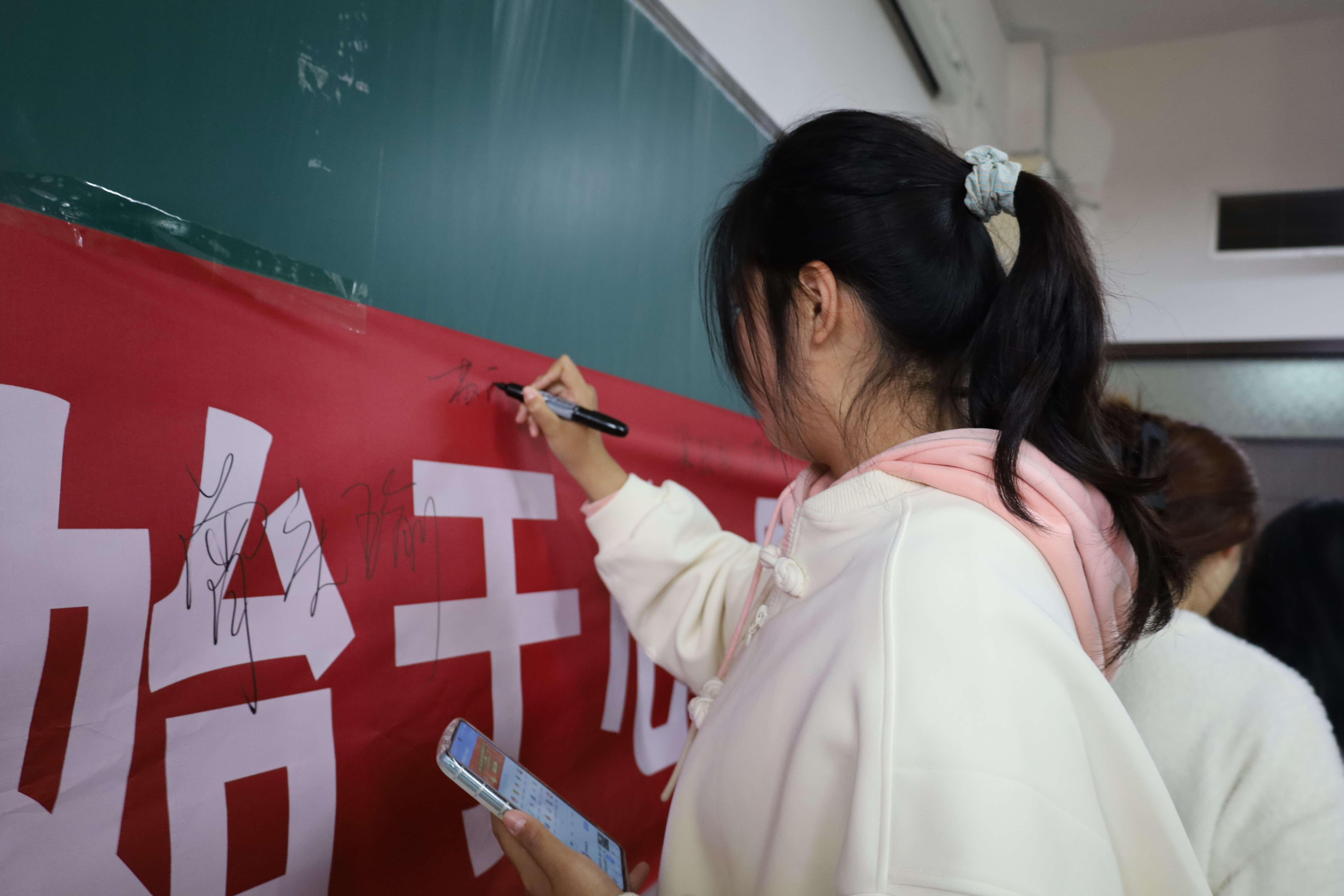 活动现场,员工会工作人员对“什么是艾滋病”、“艾滋病的症状”、“传播方式与途径”,以及“如何预防艾滋病”等方面的知识给同学进行了详细的讲解。同学们有序排队,在“珍爱生命始于心,防治艾滋践于行”防艾横幅上郑重地签下自己的名字,以此表达共同防艾的决心。