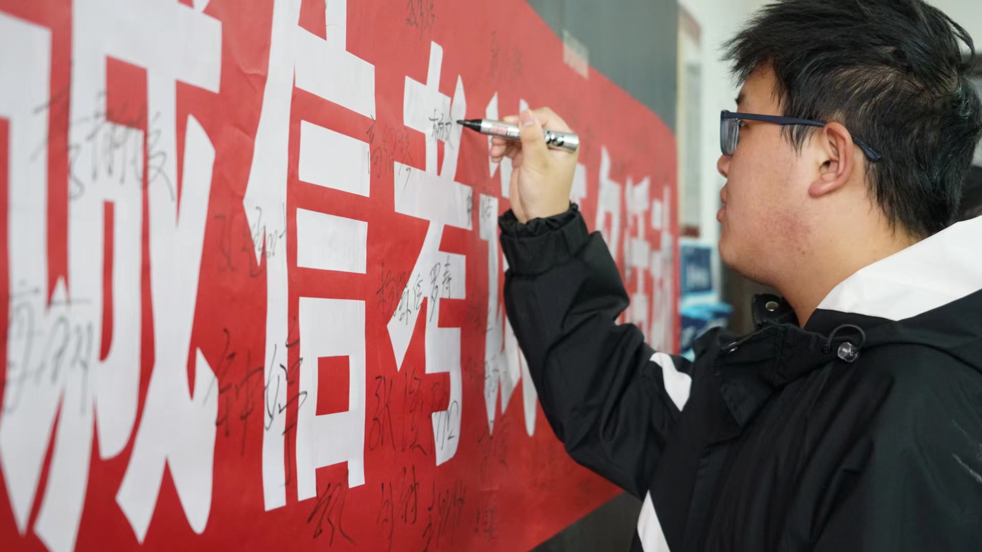 活动现场,工作人员向同学们强调了诚信考试的重要性,提醒同学们要时刻保持清醒的头脑,拒绝任何形式的作弊行为。同学们纷纷在横幅上签下自己的名字,表示将努力备考,用心复习,端正学习和考试的态度,严格遵守考试纪律,自觉抵制作弊行为。