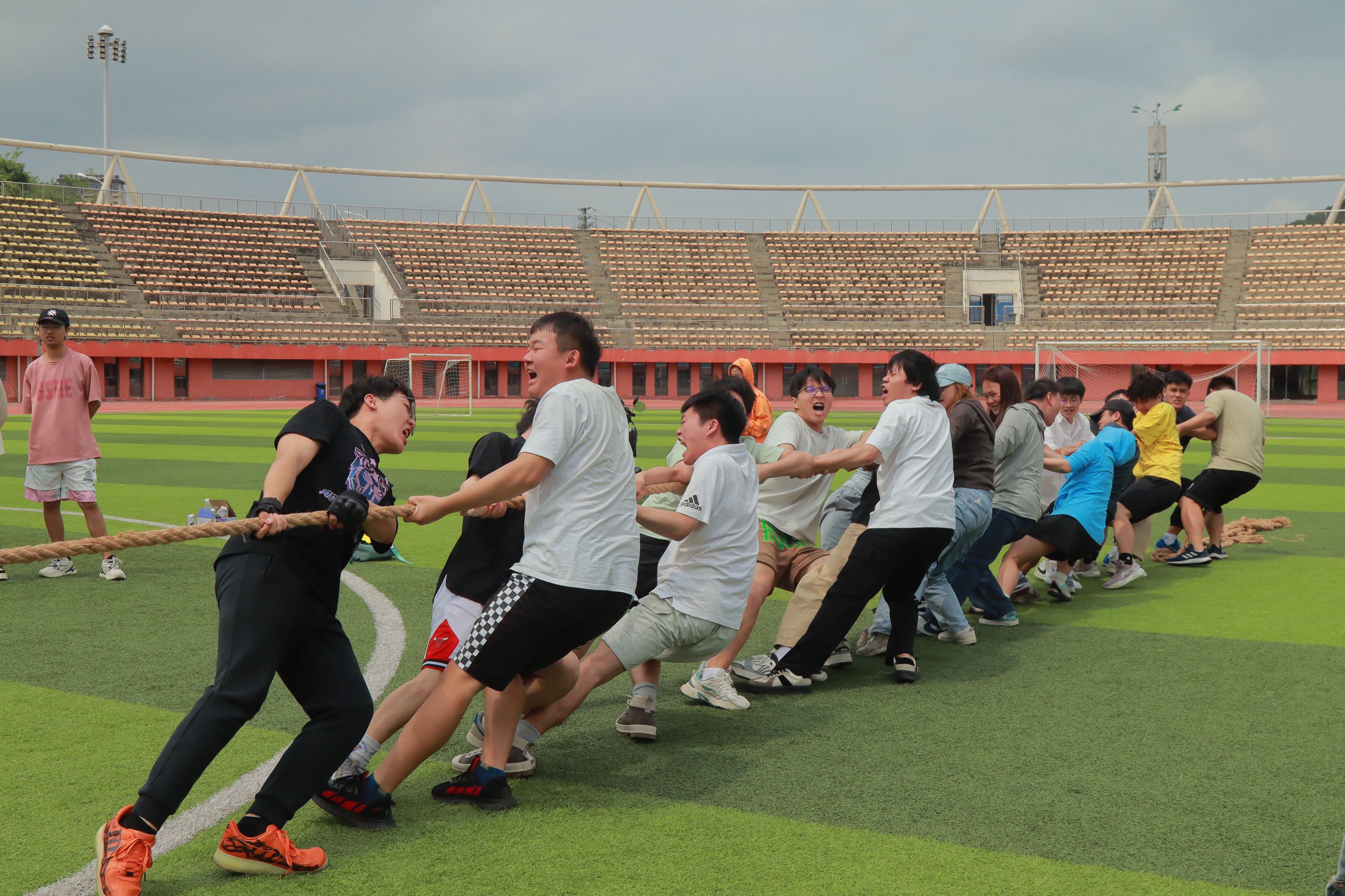 (betway西汉姆官网 王尧 报道|摄影 田甜)为丰富同学们的课余生活,加强团队协作精神,同时也为即将到来的春季运动会选拔优秀队伍,4月20日,betway西汉姆官网在西区北体育场举行2024年春季拔河比赛预选赛。