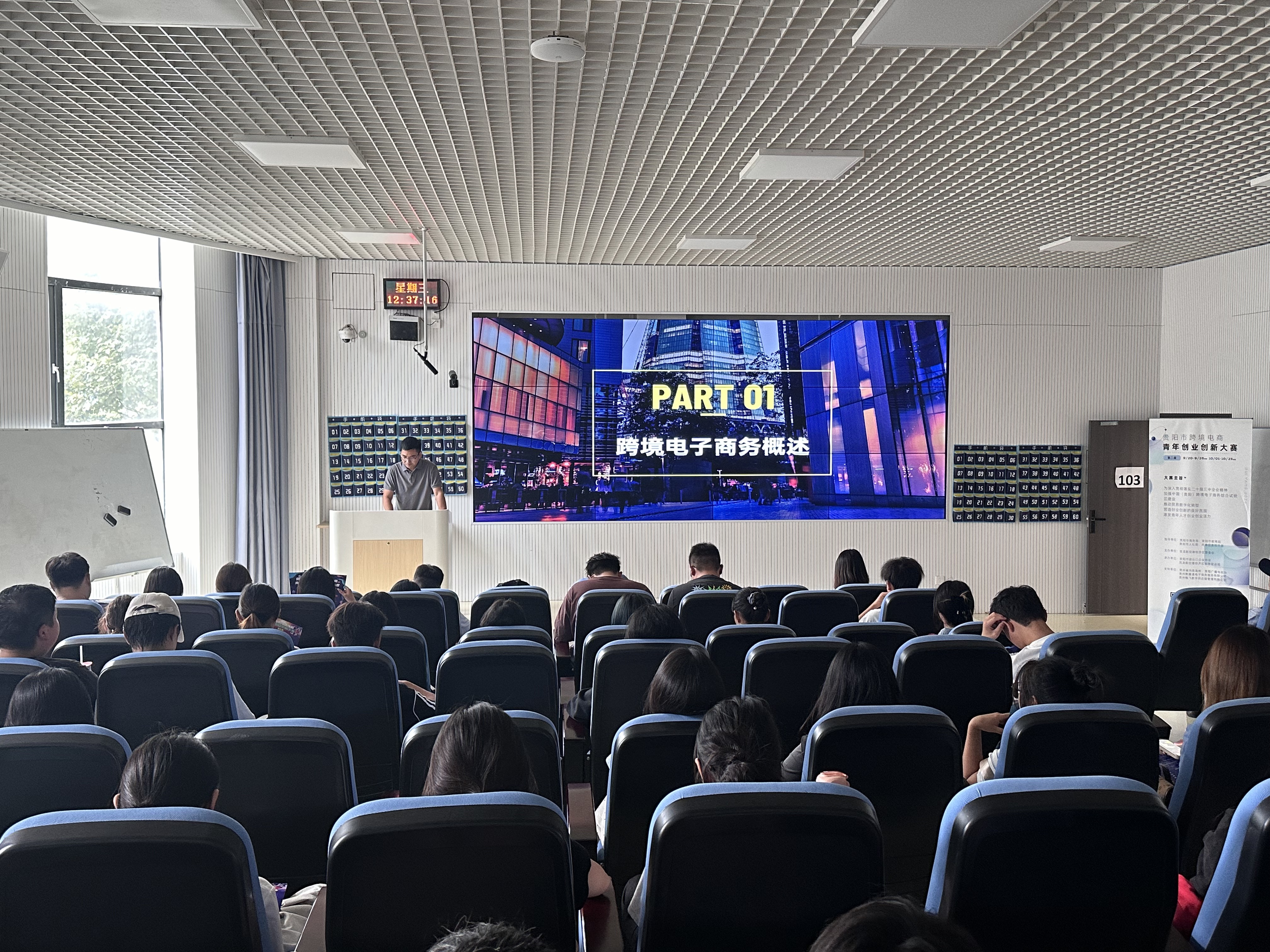 活动上,赵周亮以国内国外相结合的企业贸易交流为例,深入地介绍了跨境电子商务的发展历程、趋势以及重要性。强调在当今时代下,跨境电子商务在促进国际贸易、提升企业竞争力、方便消费者购物等方面发挥着重要作用,同学们应当积极主动地深入探寻跨境电子商务的奥妙。随后,老师详细讲解了大赛的详情内容与流程。明确的规则和清晰的流程为同学们后期参与比赛提供了有力指引。同时鼓励大家充分发挥自己的创新思维,踊跃投身于大赛之中。