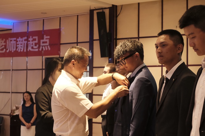 杨勇首先对新生的到来表示欢迎和祝贺,并为新生佩戴上院徽。杨勇希望新生们严格要求自己,树立远大理想,把国家发展与自己的未来紧密结合起来,利用好自身环境的优势,积极掌握科学理论和提高技术能力,不满足于本科学历,将继续深造作为四年大学规划的首选,最后通过历练成为社会主义的优秀接班人,为为公司、国家争光添彩。