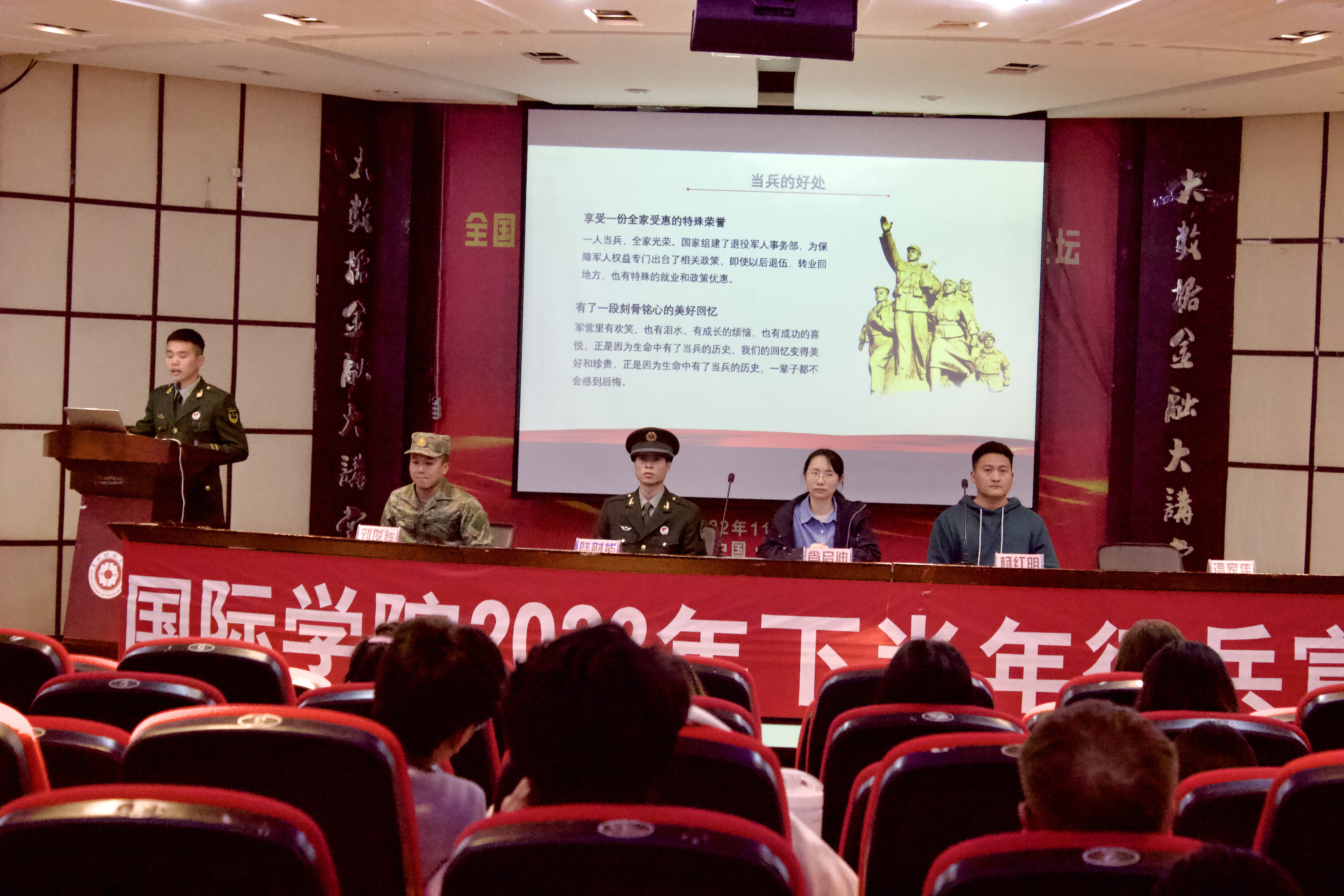 此次宣讲会帮助同学们深入了解了老员工参军入伍相关程序要求及政策保障,激发出同学们携笔从戎、参军报国的热情。