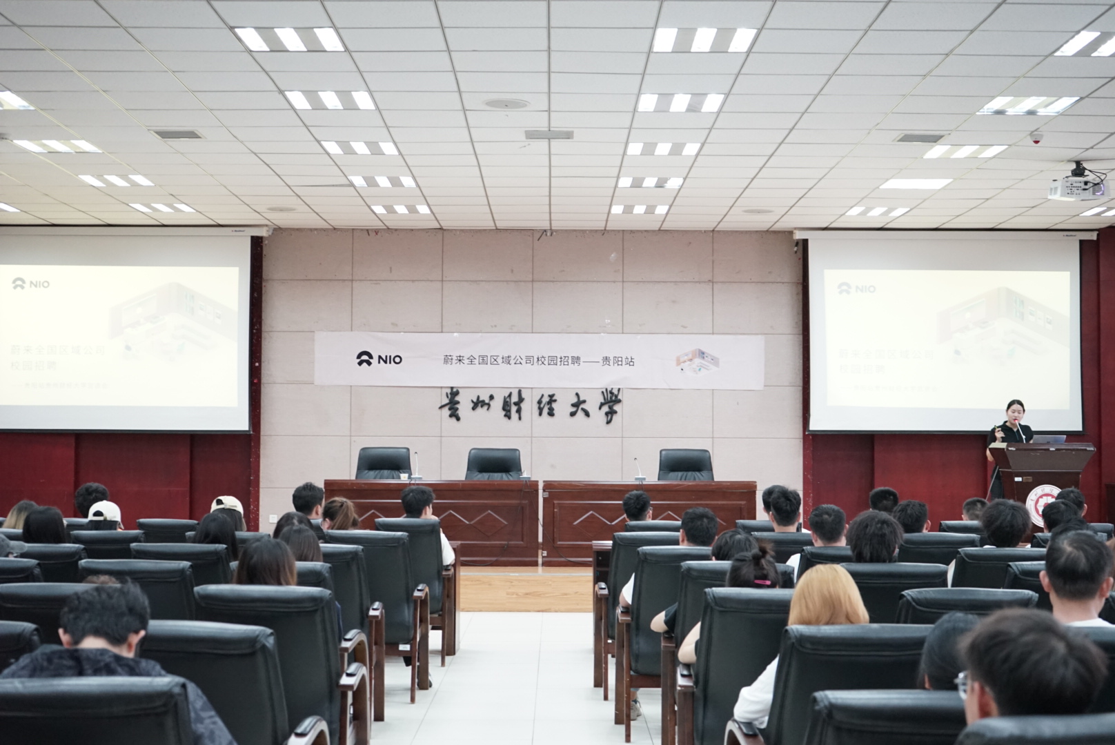 (betway西汉姆官网 向成静楠 报道|梅敏 摄影)为了进一步拓宽员工就业渠道,助力毕业生顺利就业,4月18日下午,betway西汉姆官网在正德楼114报告厅举办蔚来汽车贵阳地区校园招聘宣讲会。betway西汉姆官网百余名毕业生参加此次招聘宣讲会。