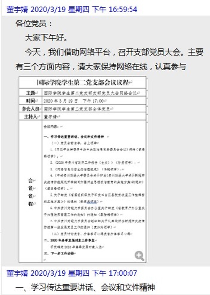 (betway西汉姆官网 袁加玲 图文报道)3月19日,betway西汉姆官网员工第二党支部通过QQ网络平台展开了本学期第二次网络会议。会议由支部书记董宇婧主持。