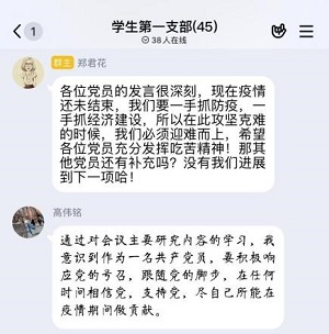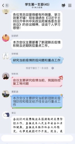 郑君花对大家的作答表示肯定,并要求同志们结合自身实际情况谈谈对本次会议精神的感悟,支部教工党员和员工党员均积极回答且参与交流讨论,支部群内学习氛围十分浓厚。