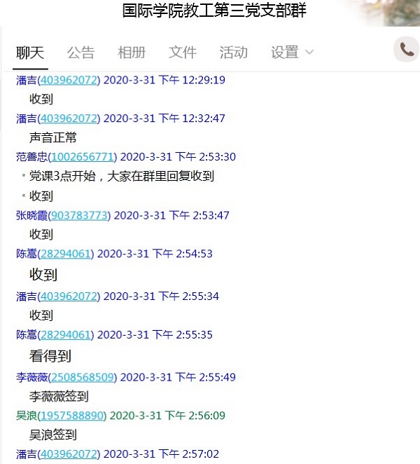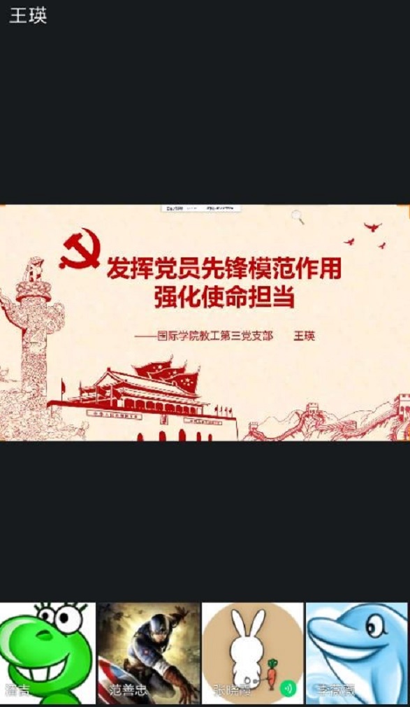 (betway西汉姆官网 吴浪 图文报道)3月31日,betway西汉姆官网教工第三党支部利用线上会议室开展了2020年第一季度网络党课学习,支部书记王瑛以“发挥党员先锋模范作用,强化使命担当”为题作专题党课讲授,支部全体党员进行了线上集中学习。