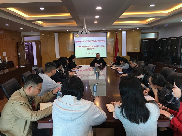姜友文为参会人员解读了《中共betway西汉姆官网委员会组织部关于认真开好2020年度基层党组织组织生活会和做好民主评议党员工作的通知》,要求支部党员按照文件要求做好相关工作。他传达了十九届五中全会与省委十二届八次全会精神,带领支部党员学习了《习近平谈治国理政》第三卷、《习近平总书记在全国抗击新冠肺炎疫情表彰大会上的重要讲话》、《习近平总书记对贵州工作、教育工作的重要指示批示精神》等重要文件。
