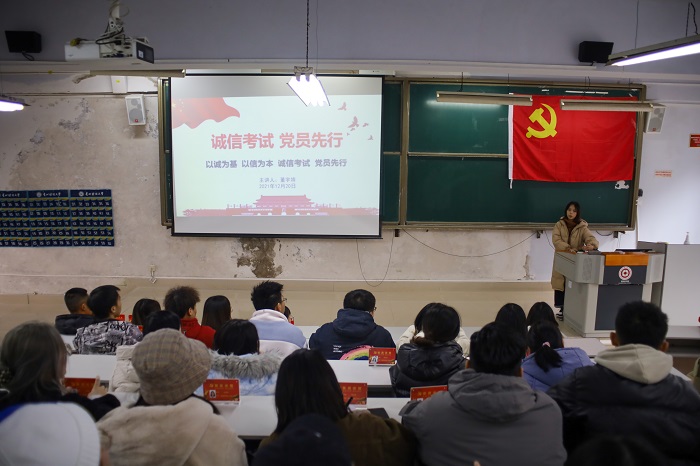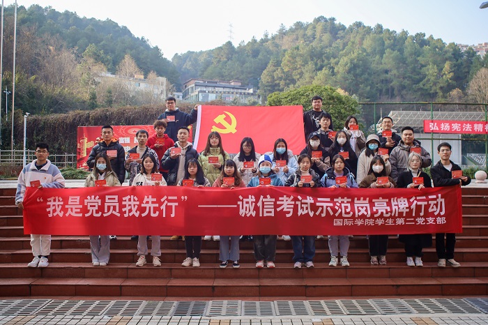 (betway西汉姆官网 何思源 报道|摄影 何政昊)为端正考风、严肃考纪,营造诚信考试的良好作风,充分发挥员工党员的先锋模范作用,12月21日,betway西汉姆官网员工第二党支部开展“诚信考试,党员先行”诚信考试示范岗亮牌行动,要求支部全体党员在本学期期末考试中全部亮出“党员示范”岗牌子。支部书记董宇婧和支部全体党员参加了启动仪式。