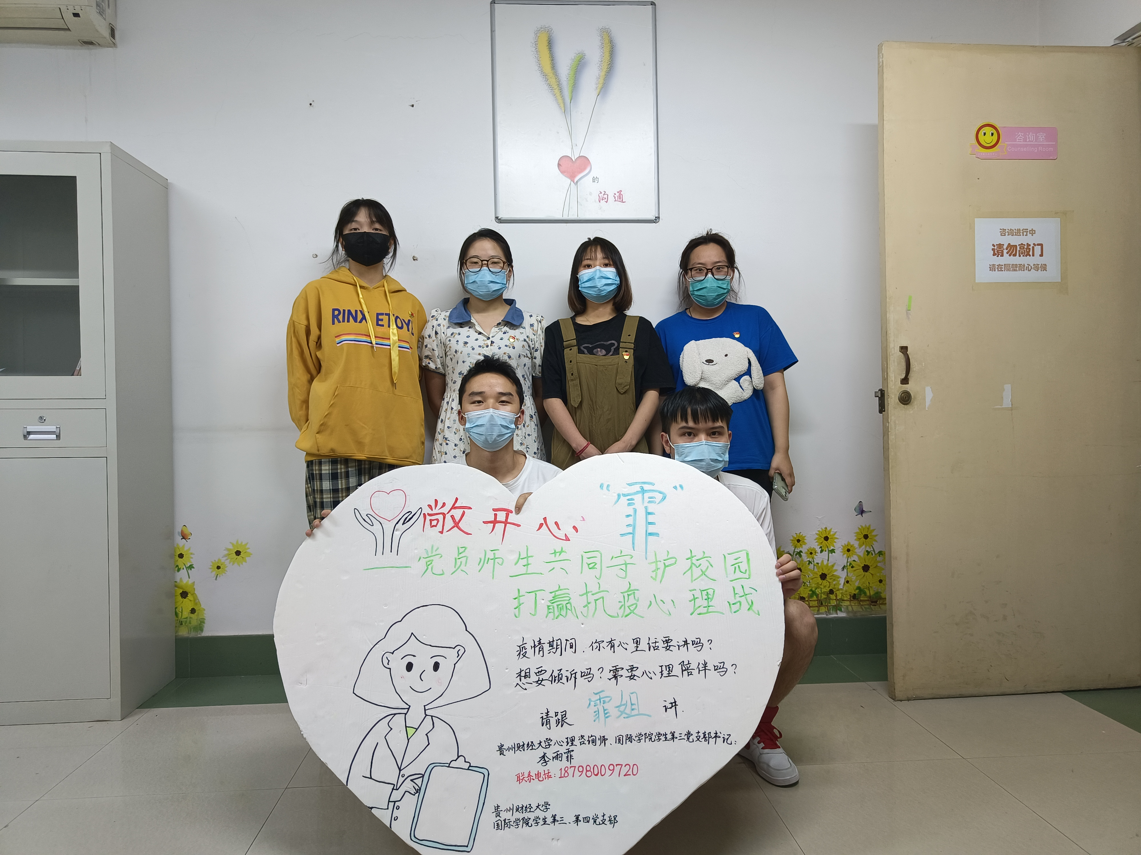 支部员工党员主动请缨前往心理咨询室进行值班,接待前来求助的同学,对其进行情感上的关心和安抚,并帮助同学们进行专业的心理咨询预约。