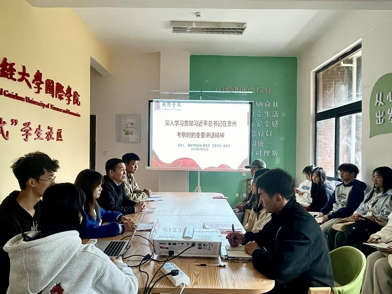 会上,姜友文以习近平总书记深入考察黔东南肇兴侗寨这一时政热点为切入口,围绕习近平总书记对贵州发展的战略指引,深入剖析了新时代的背景下,贵州产业结构不断优化升级与就业格局的新变化。姜友文强调,习近平总书记明确指出贵州要积极发展战略性新兴产业,做强做优数字经济、新能源等产业。这些产业的迅速崛起,不仅将成为驱动贵州高质量发展的新引擎,更将为年轻人带来广阔的就业空间。姜友文鼓励同学们要紧紧抓住时代赋予的宝贵机遇,主动对标产业发展需求,以“敢闯敢干”的劲头投入家乡建设。在推动贵州实现高质量发展的征程中实现个人价值与社会价值的统一。