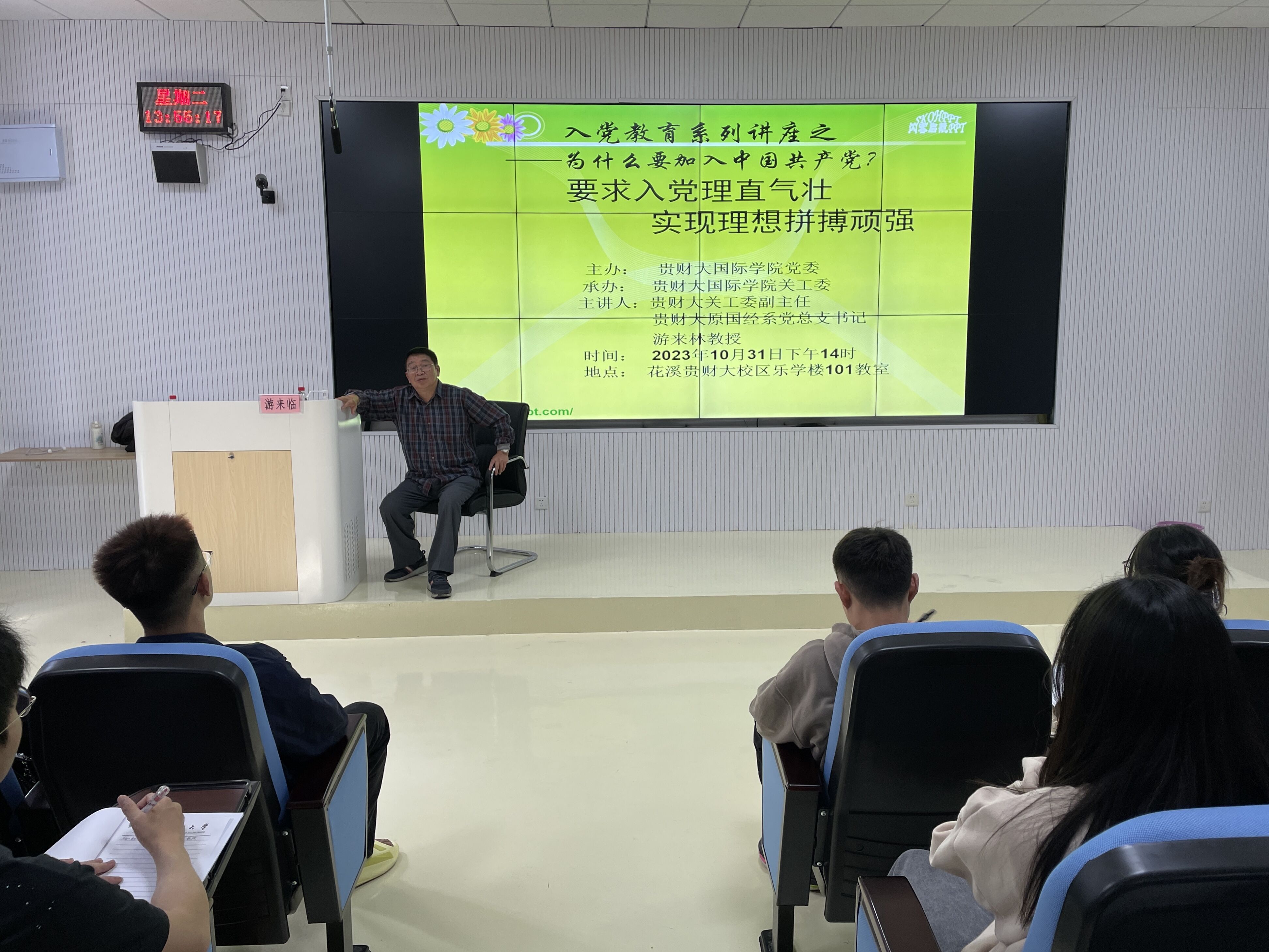 (betway西汉姆官网 周鑫钦 李小菊 报道|摄影 罗湘婷 戴昱辰)10月31日,国际公司党校在乐学楼101教室开展“为什么要加入中国共产党”专题党课,betway西汉姆官网关工委副主任游来林教授主讲,公司2023年秋季入党积极分子培训班全体学员参加。