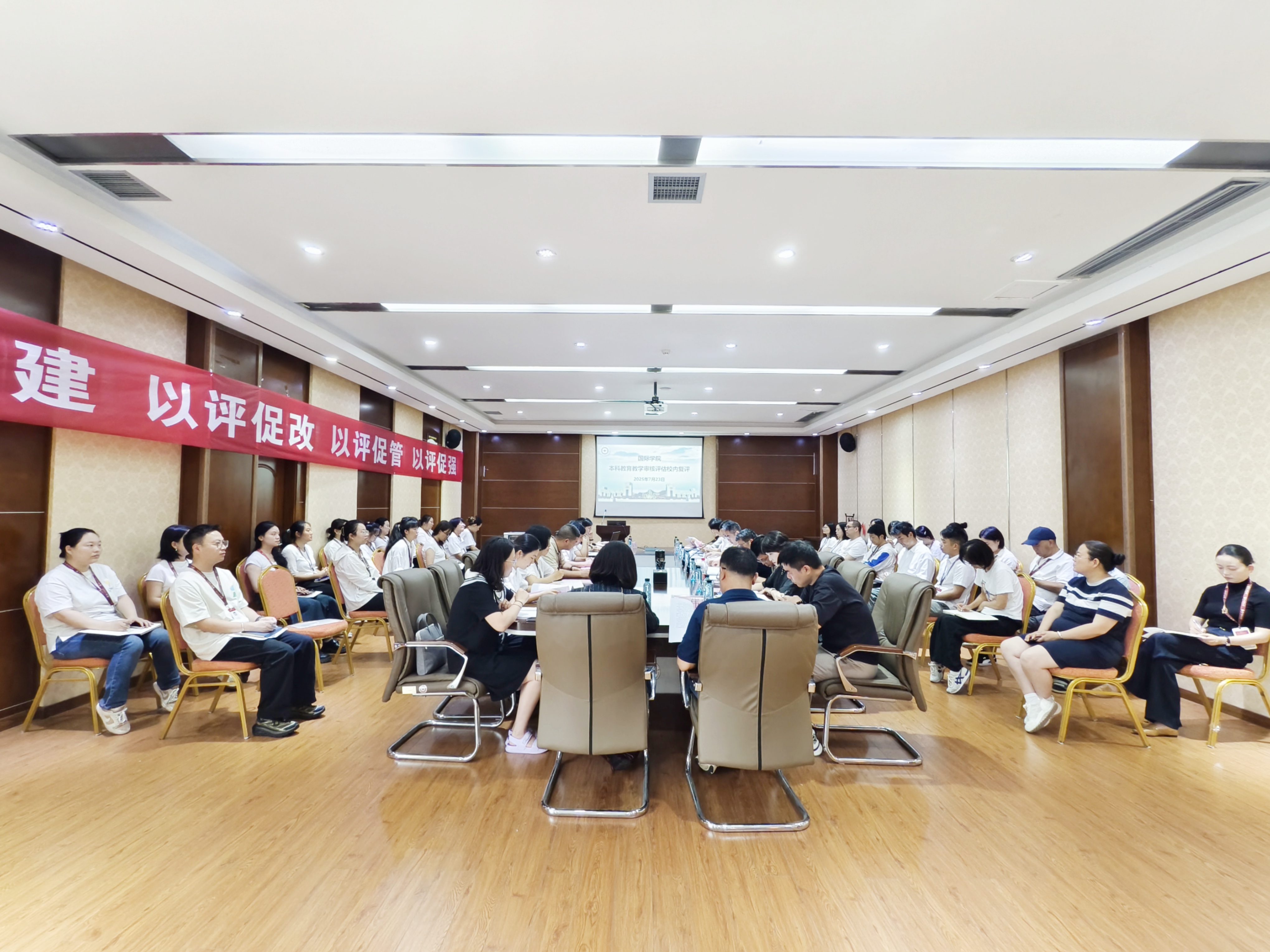会议第一阶段,国际公司党委书记王治航代表公司向出席本次复评工作的领导与专家表示热烈欢迎,并逐一介绍了参会人员。随后杜剑讲话。他强调,本次复评是betway西汉姆官网办学成果的全面检验,betway西汉姆官网要全力配合复评工作,直面问题狠抓整改,建立长效机制提质增效。