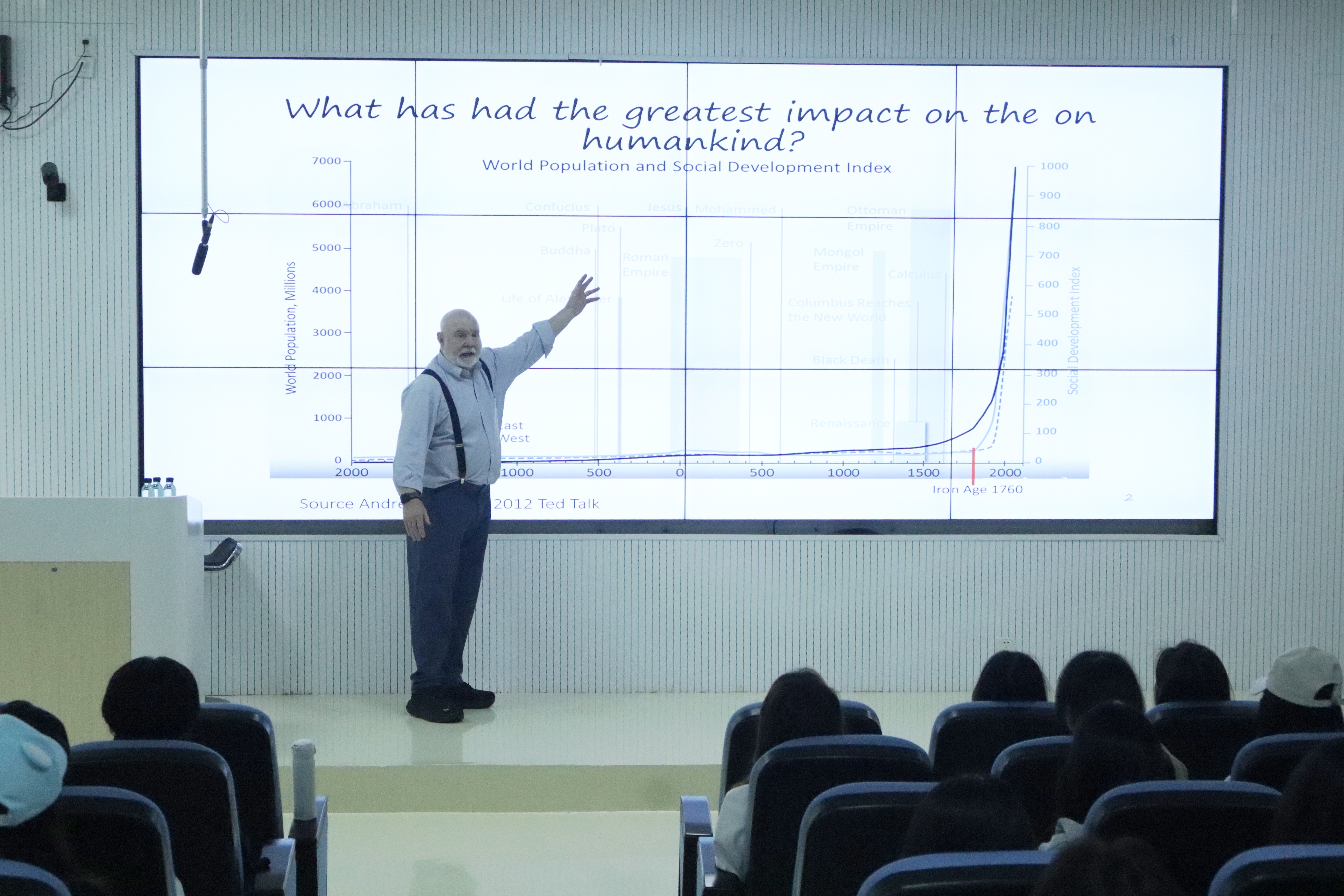 Rick Weible首先从人工智能技术对人类社会的深远影响谈起,结合当下热点问题,引发大家对AI与人类关系的深入思考。他深入浅出地介绍了语言模型的工作原理,尤其是基于神经网络的生成机制,帮助听众建立起对生成式AI的基本认知。在此基础上,Rick Weible通过多个案例,展示了AI在音乐创作、科学药物研发等领域的实际应用场景,让师生直观感受到技术与创新的结合如何正在重塑多个行业。他还就“AI是天使还是魔鬼?”这一富有争议性的命题,探讨了人工智能未来发展的可能方向,引发现场深思。
