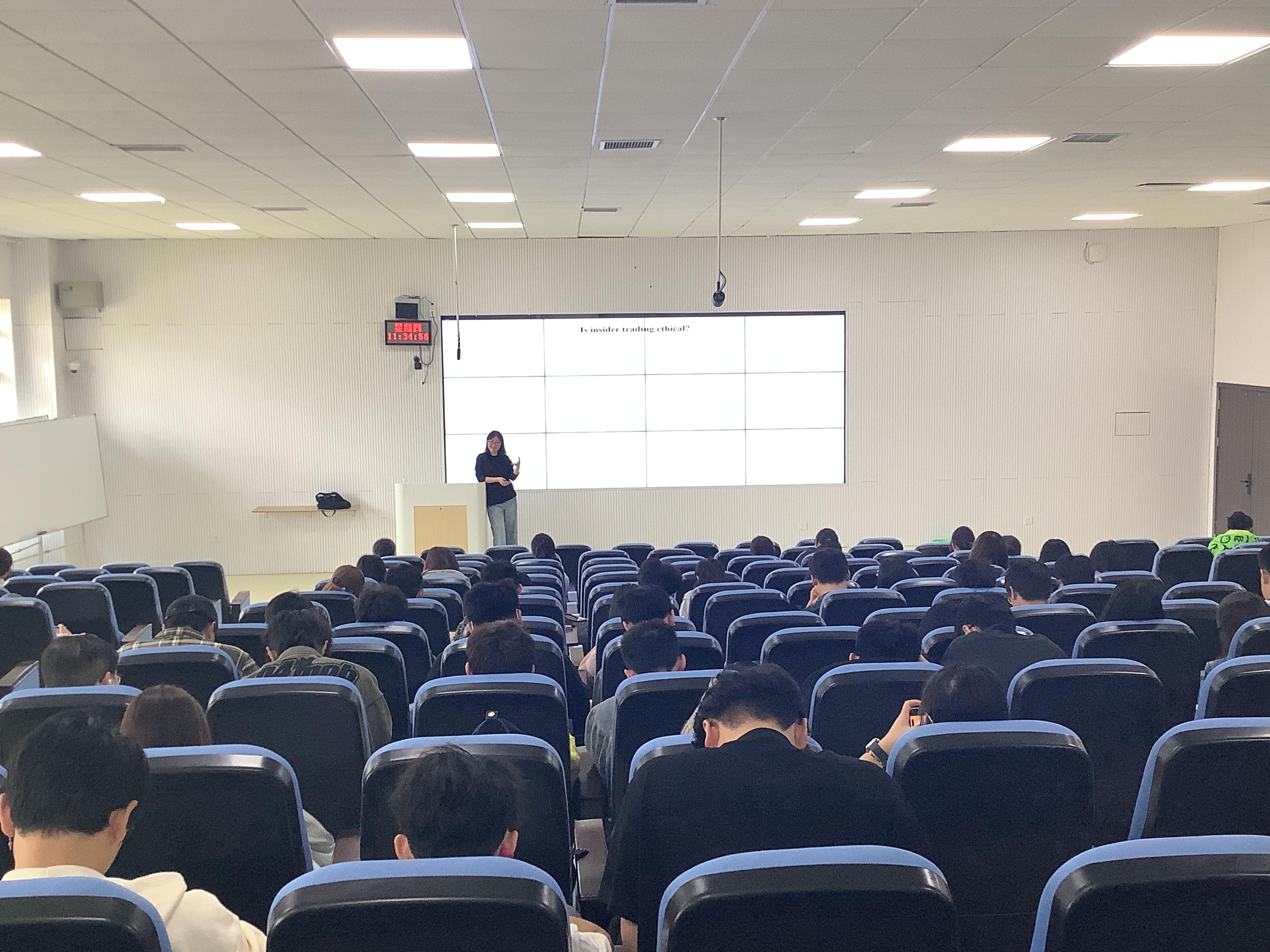 (betway西汉姆官网 张章 图文报道)4月17日,betway西汉姆官网邀请英国爱丁堡龙比亚大学Yuan Li博士在西区乐学楼201为公司员工开展“金融伦理”公开课。