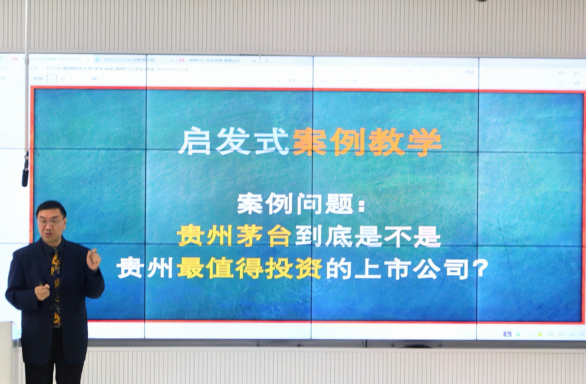 此次讲座别出心裁地以 “贵州茅台到底是不是贵州最值得投资的上市公司” 这一极具启发性的案例开启讲座的篇章。王德宏从分析市场情绪,通过成交量,股价波动率等多维角度中得出高级经管类人才的培养需要与时俱进,把传统知识应用到现代科技技术中。案例教学巧妙地遵循初步启发、深度启发、激发思考、递进式启发这四个步骤,有条不紊地将公司学子从浅层次逐步引领至深层次,使其沉浸于长、短期投资视角的深度分析演讲之中。讲座借助实际案例深度解析不同投资期限与风险偏好,使公司学子得以透彻领悟其中蕴含的逻辑关联。最后,在问答环节针对公司学子关于未来职业规划中诸如 “怎样发展”“如何发展” 等关键问题,王德宏提供了切实可行的宝贵建议。