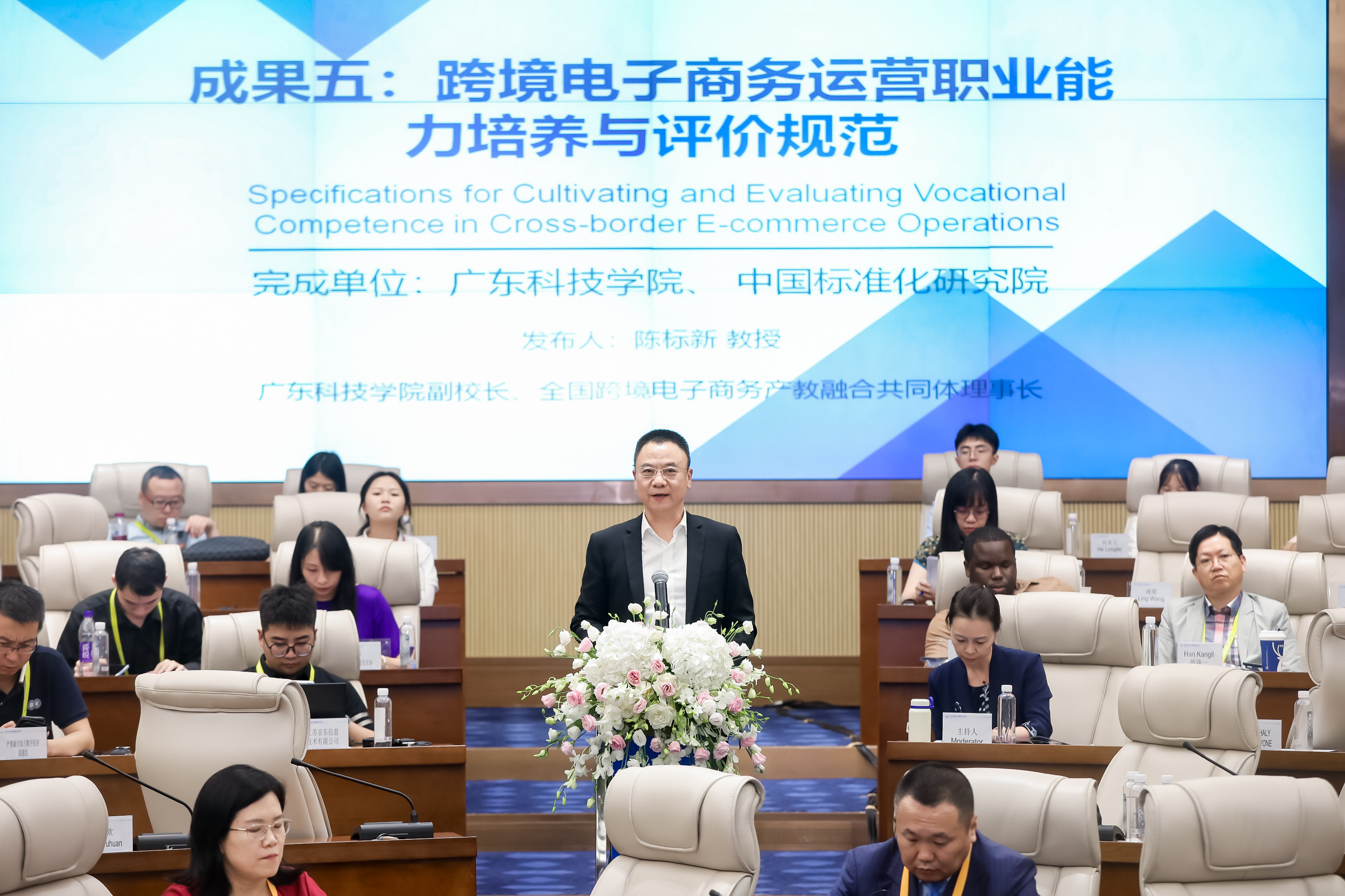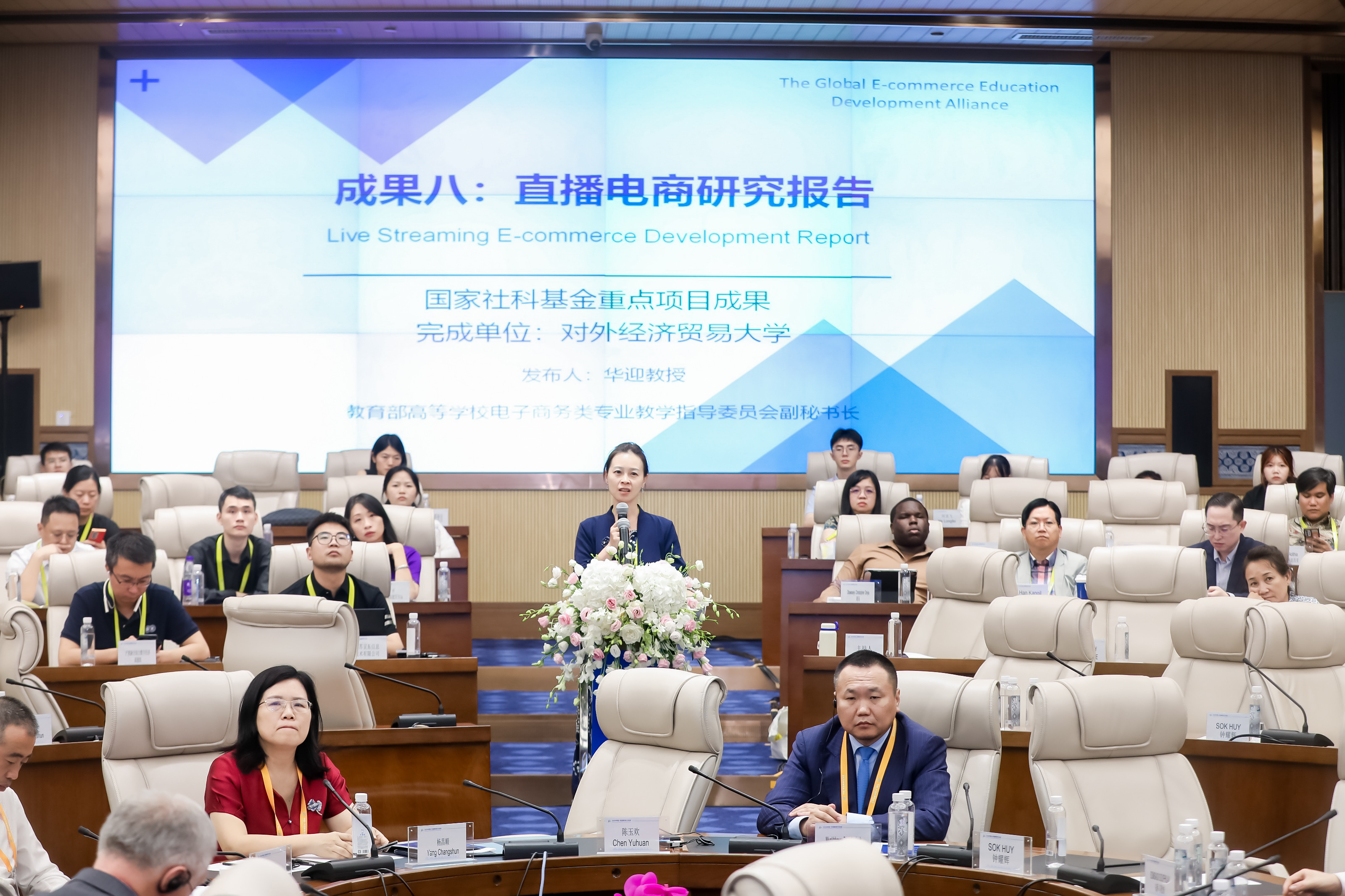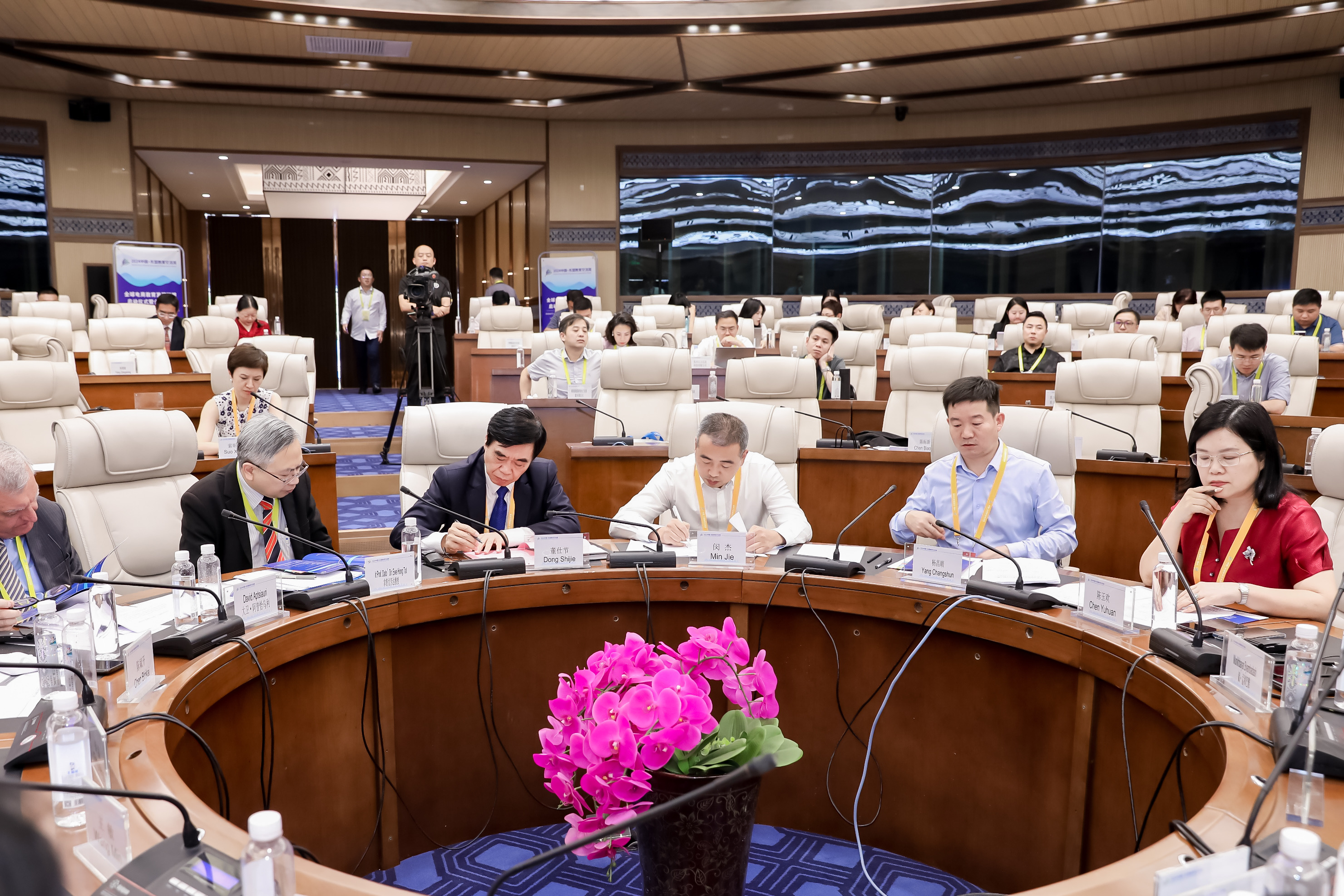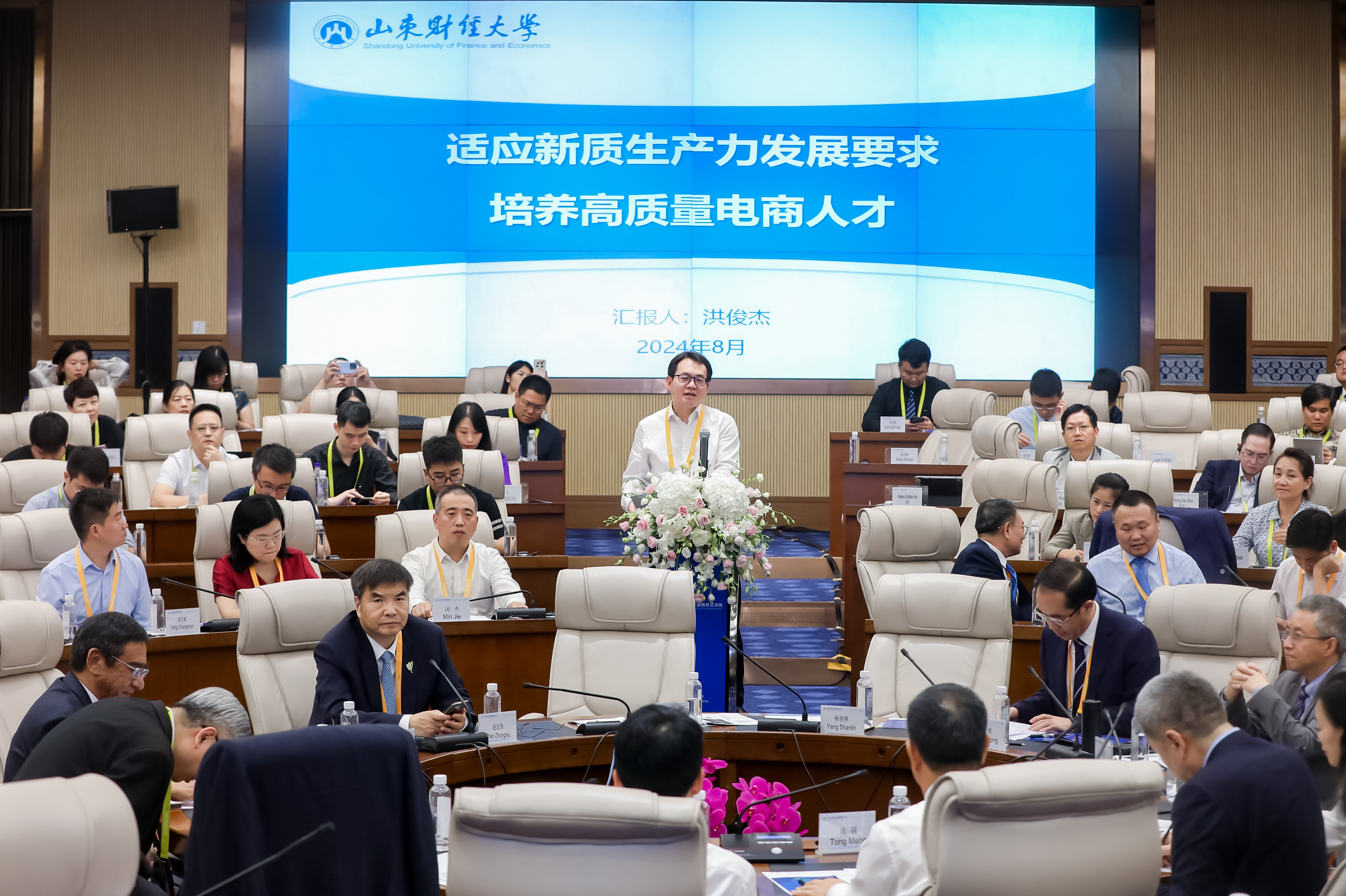 会上的中外董事长圆桌对话,邀请了14名中外董事长及专家围绕跨境电商、数字贸易、数字经济作主旨发言。圆桌对话由浙江工商大学董事长王永贵主持。云南财经大学董事长王敏、武汉轻工大学董仕节、老挝乌多姆赛省教育厅厅长宋萨、马来西亚拉曼大学董事长尤芳达、柬埔寨柬华应用科技大学执行董事长钟耀辉、蒙古财经大学董事长斌·孟和巴雅尔、泰国正大管理公司助理董事长、中国东盟研究中心(CASPIM)主任汤之敏、格鲁吉亚工商会会长大卫·阿普恰乌利等中外嘉宾参加了圆桌对话。中外教育领袖围绕电商教育的新趋势、新模式展开深入交流。