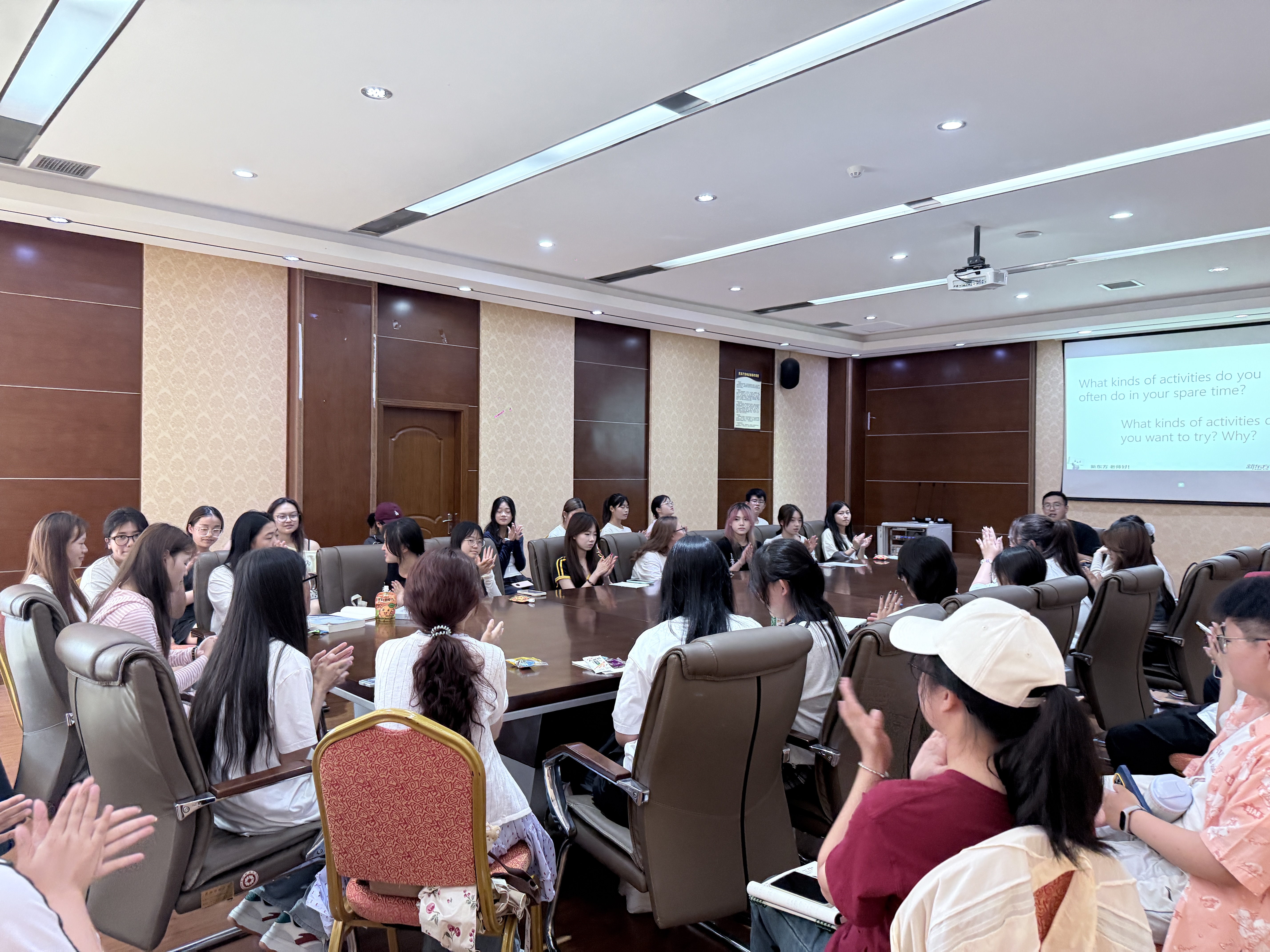 活动开场,陈嵩表示,英语角作为公司“国际化人才培养”体系的重要组成部分,不仅是员工练习口语的实践场,更是拓宽国际视野、培养跨文化交际能力的重要窗口。她勉励同学们珍惜这样的锻炼机会,主动参与、积极互动,让英语角真正成为闪亮自我、交流思想的舞台。刘利音结合自身英语学习经历,深情寄语在场学子,鼓励大家不怕犯错、勇于开口,在日常交流中积极运用英语,不断提升语言实际应用能力。她表示,公司将持续为同学们营造良好的英语学习环境,支持每一位同学在大胆表达中成长。